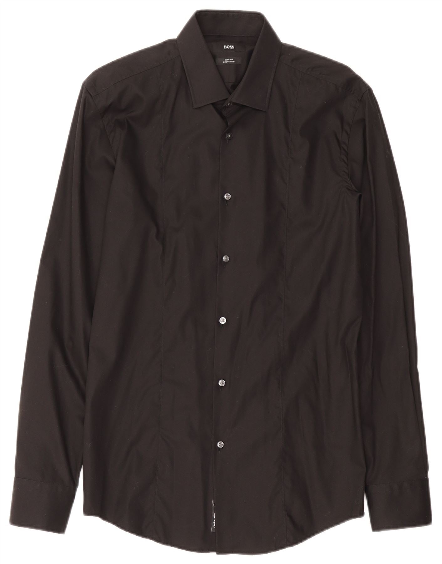 Hugo Boss Mens Slim Fit Shirt Size 39 Medium Black Cotton