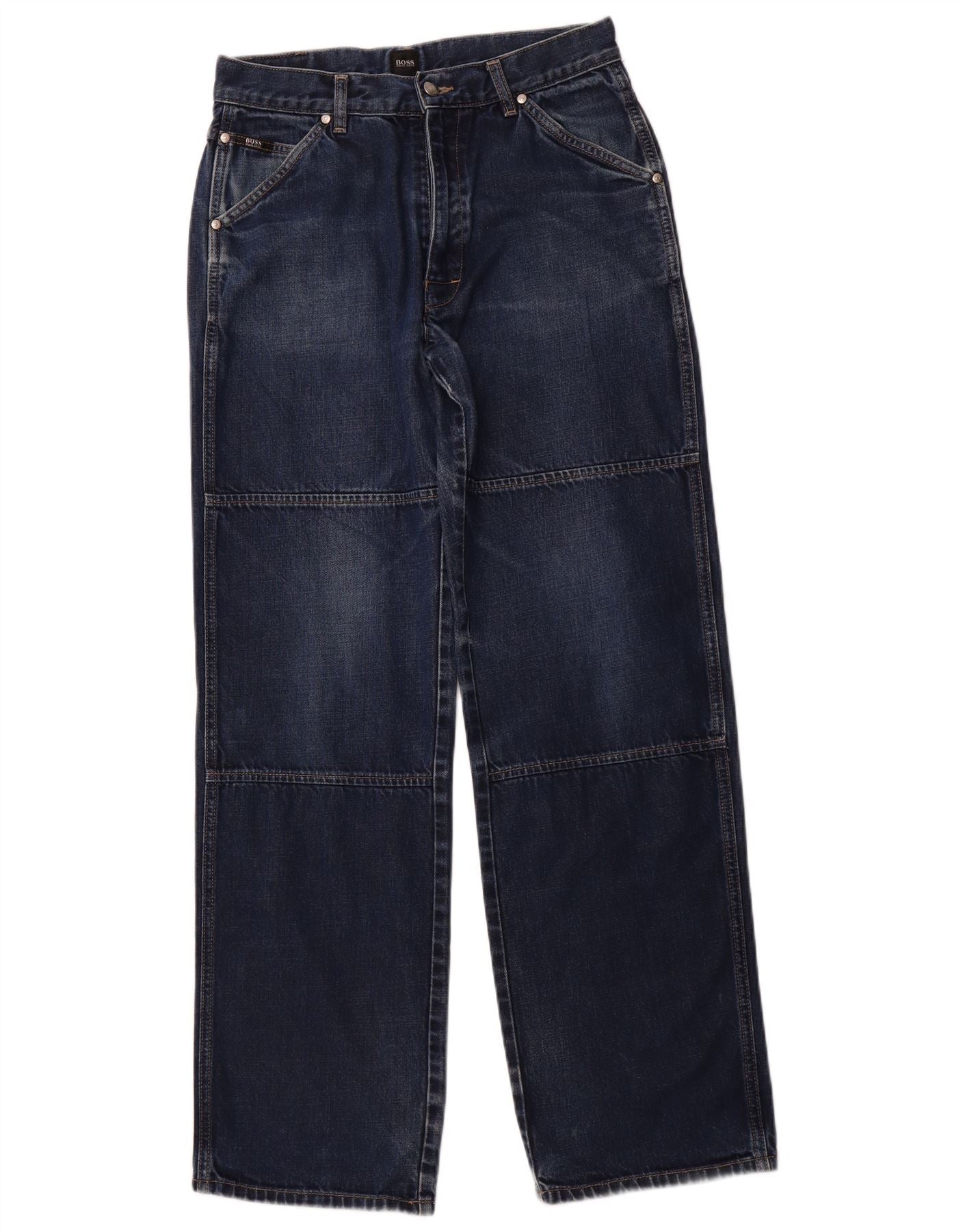 HUGO BOSS Mens Straight Jeans W31 L34 Navy Blue Cotton