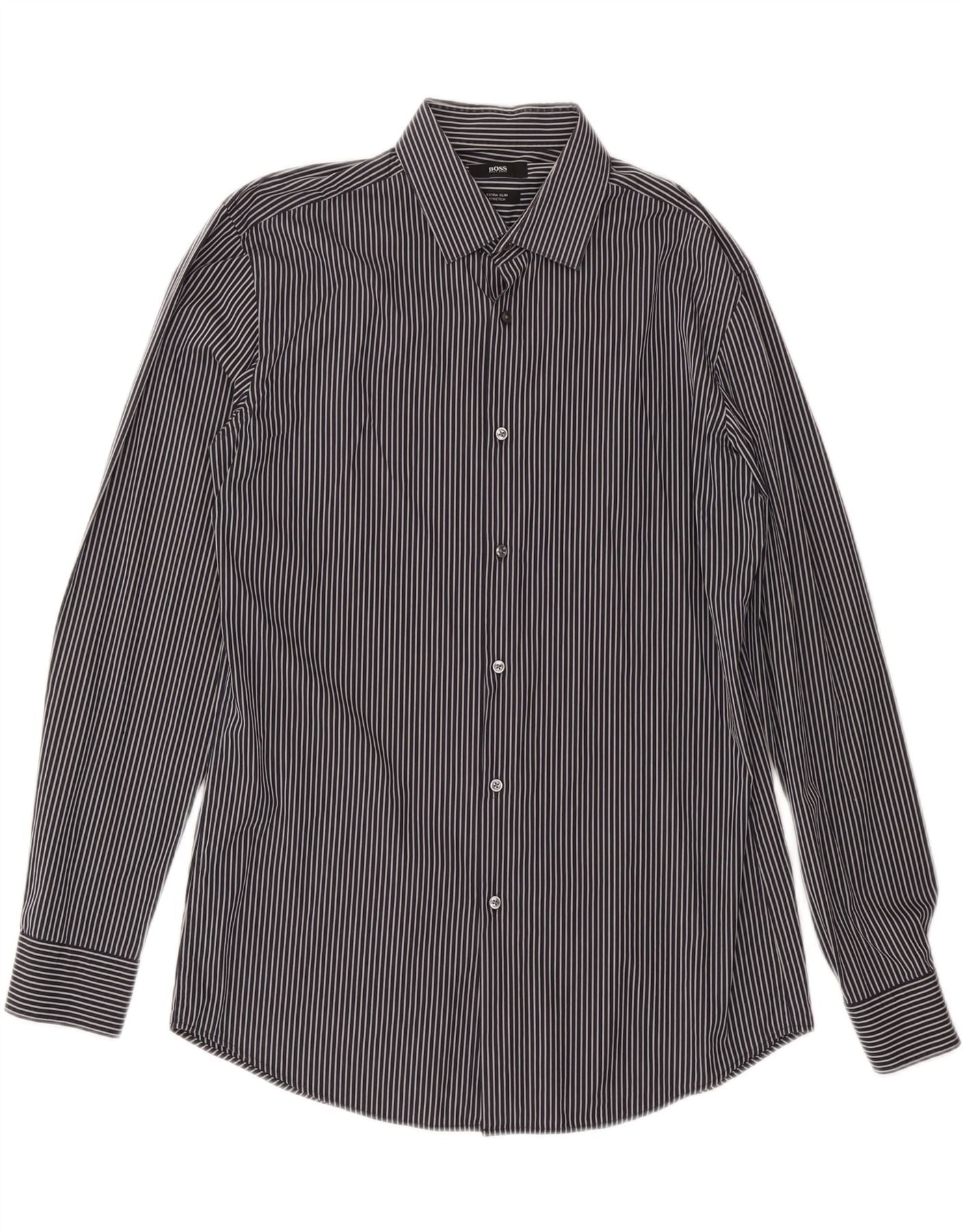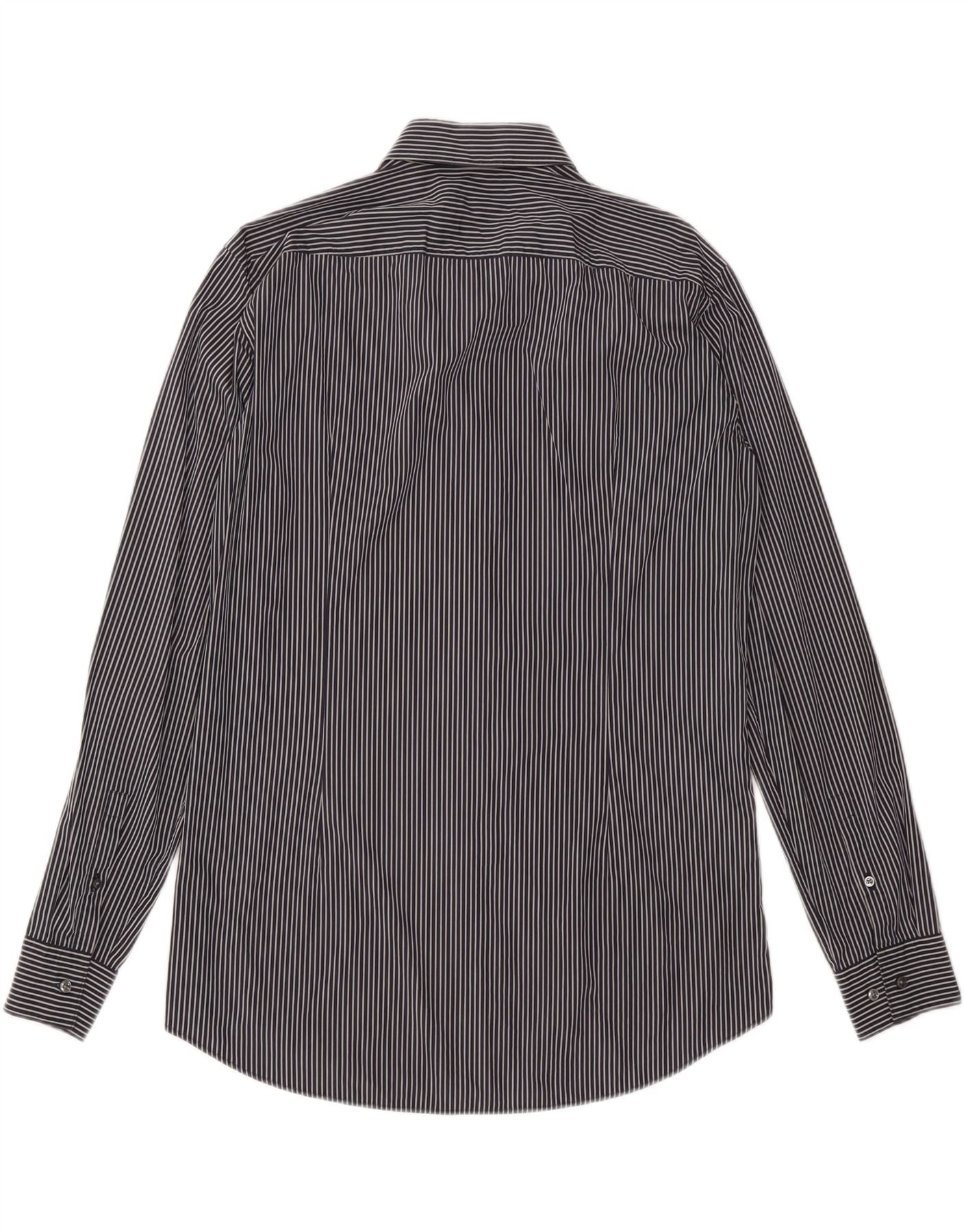 HUGO BOSS Mens Stretch Shirt Size 42 16 1/2 Large Black Pinstripe