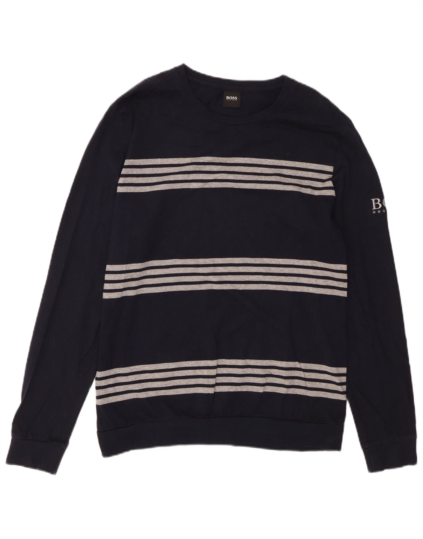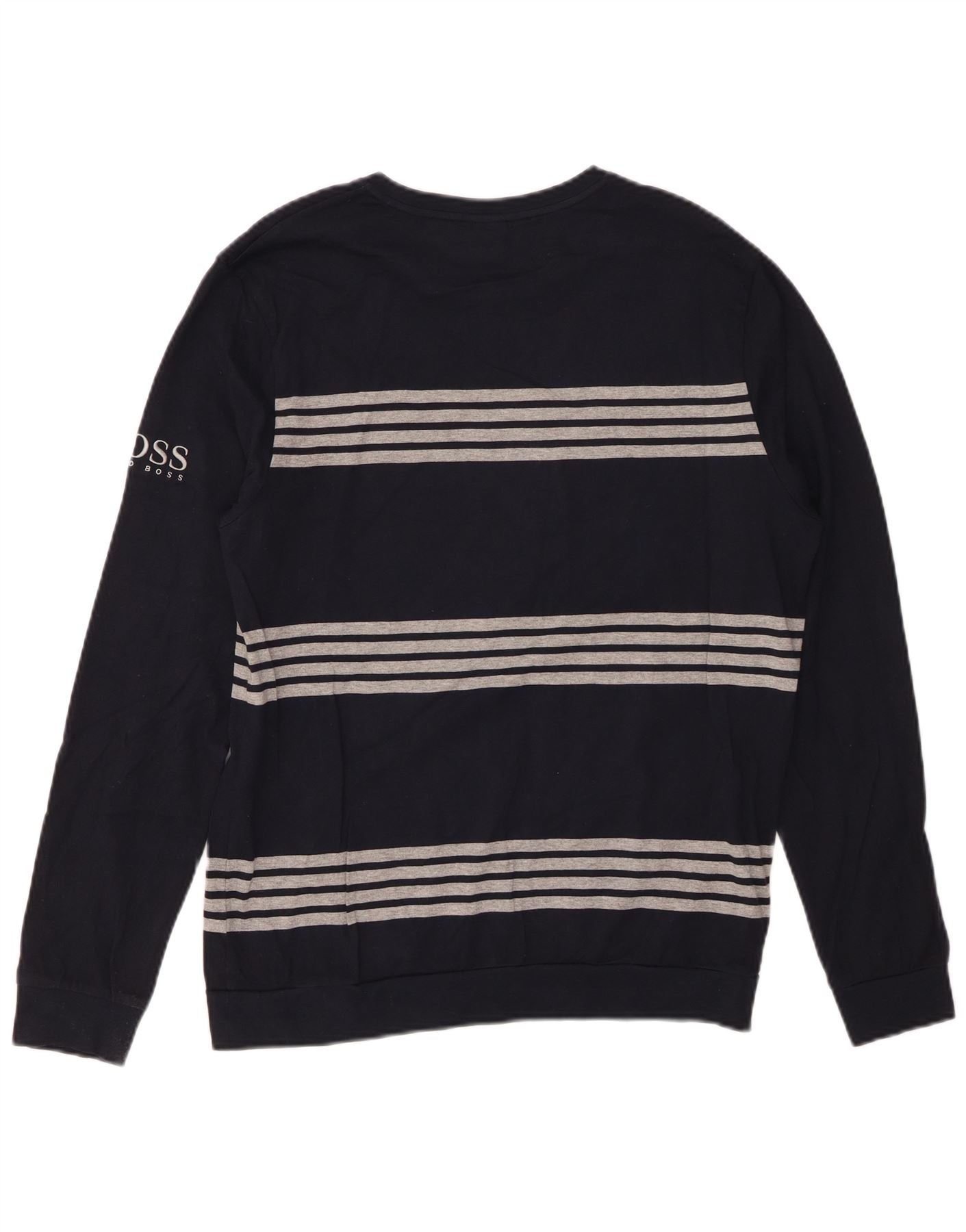HUGO BOSS Mens Top Long Sleeve Medium Navy Blue Striped Cotton