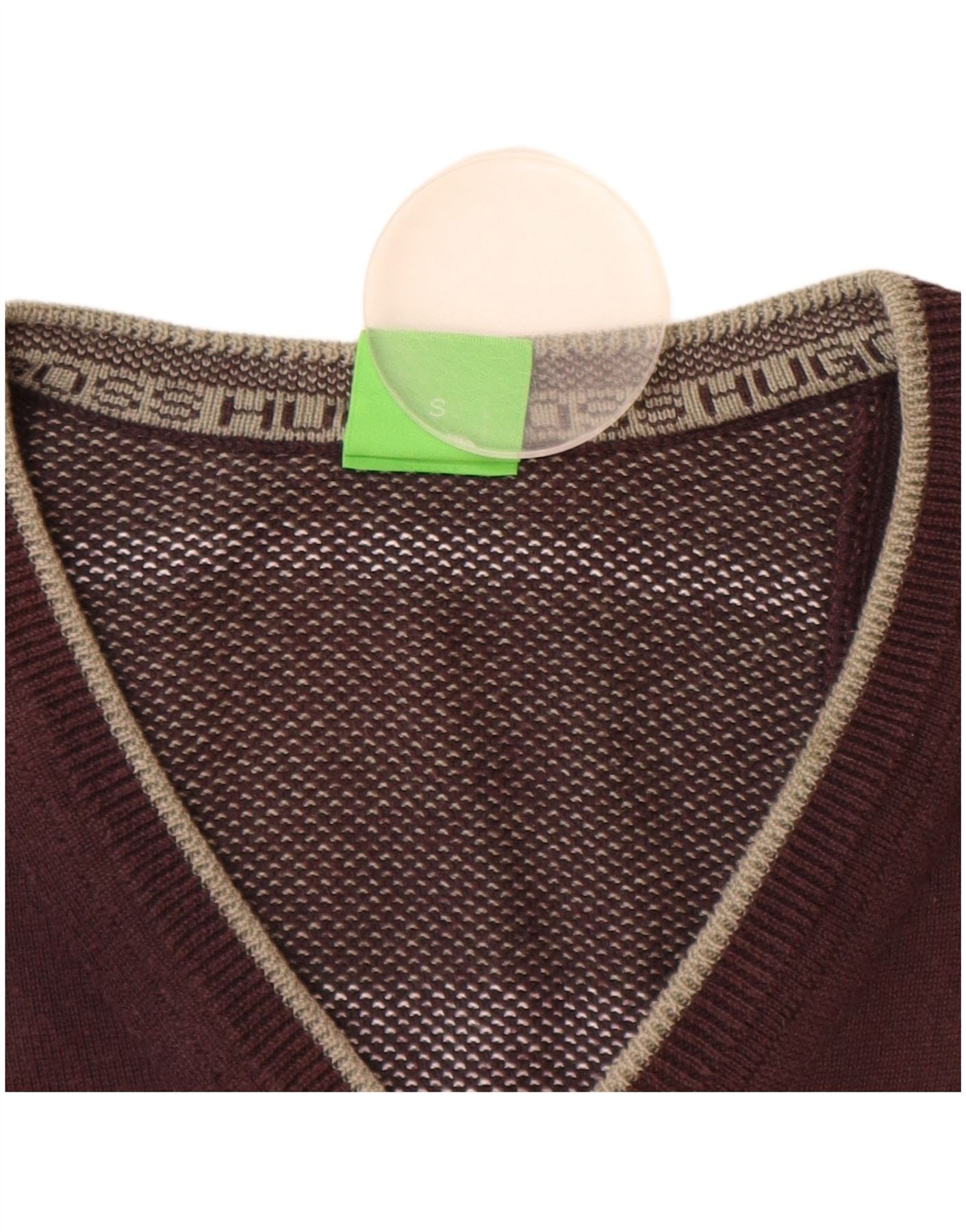 HUGO BOSS Mens V-Neck Jumper Sweater Small Brown Cotton