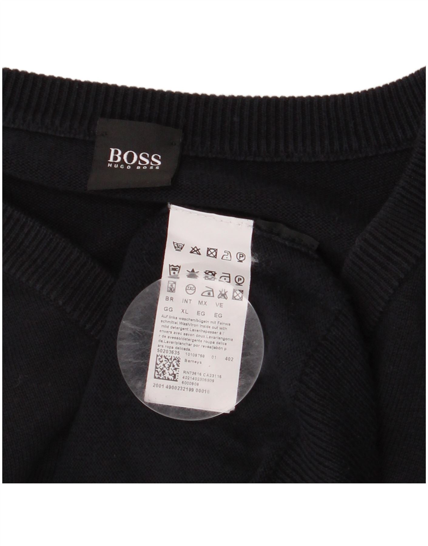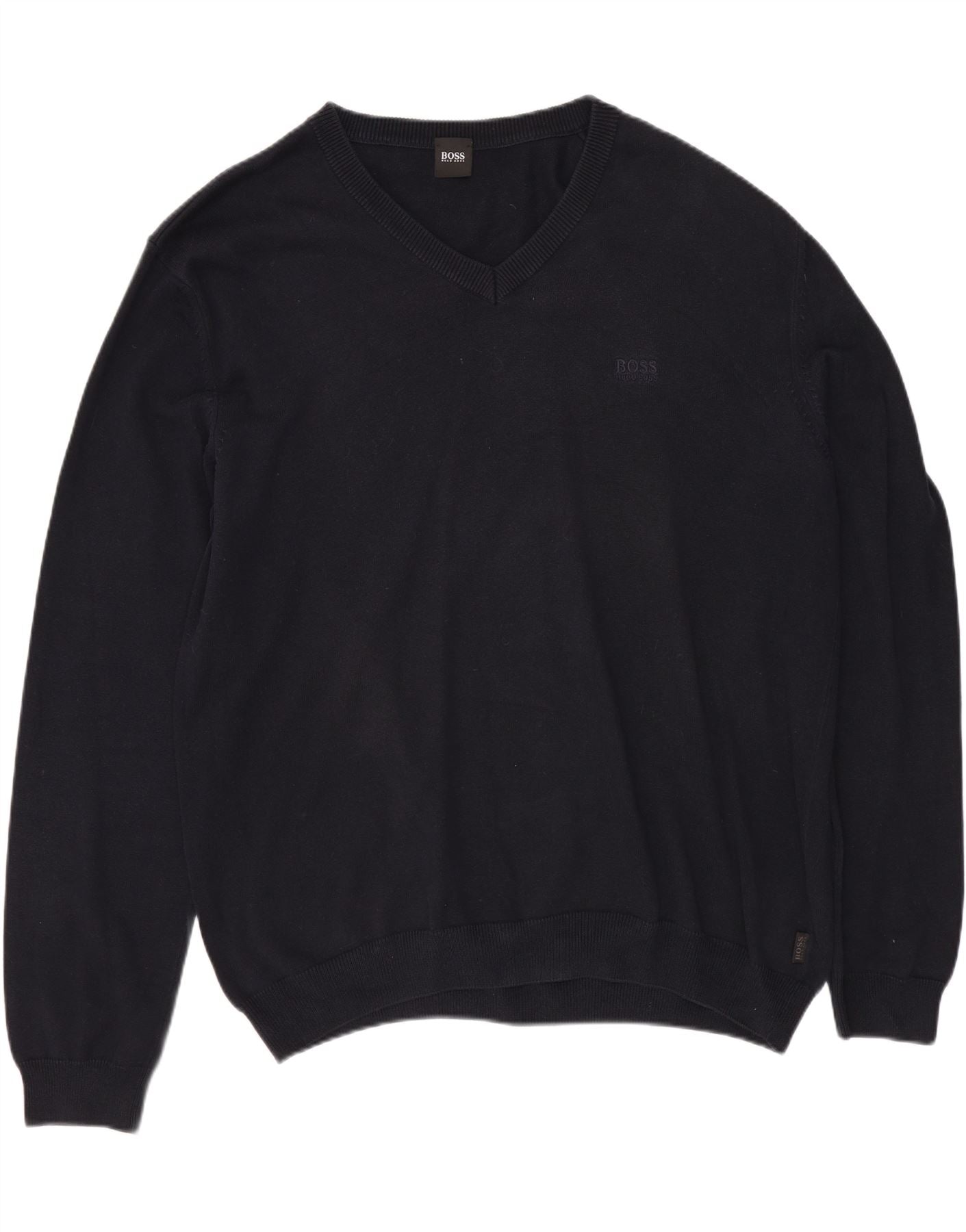 HUGO BOSS Mens V-Neck Jumper Sweater XL Navy Blue Cotton