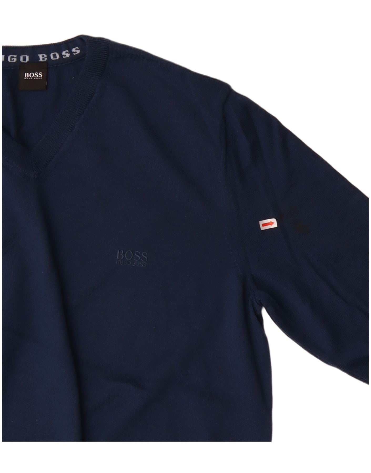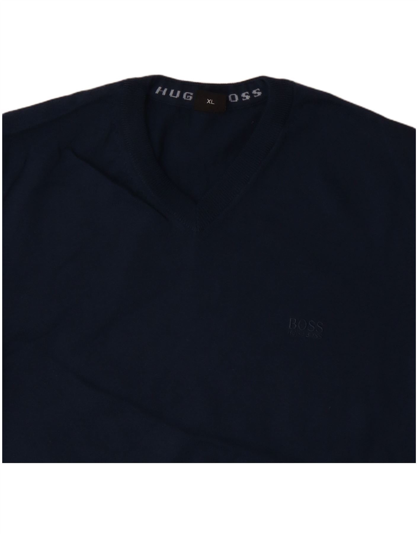 HUGO BOSS Mens V-Neck Jumper Sweater XL Navy Blue Wool