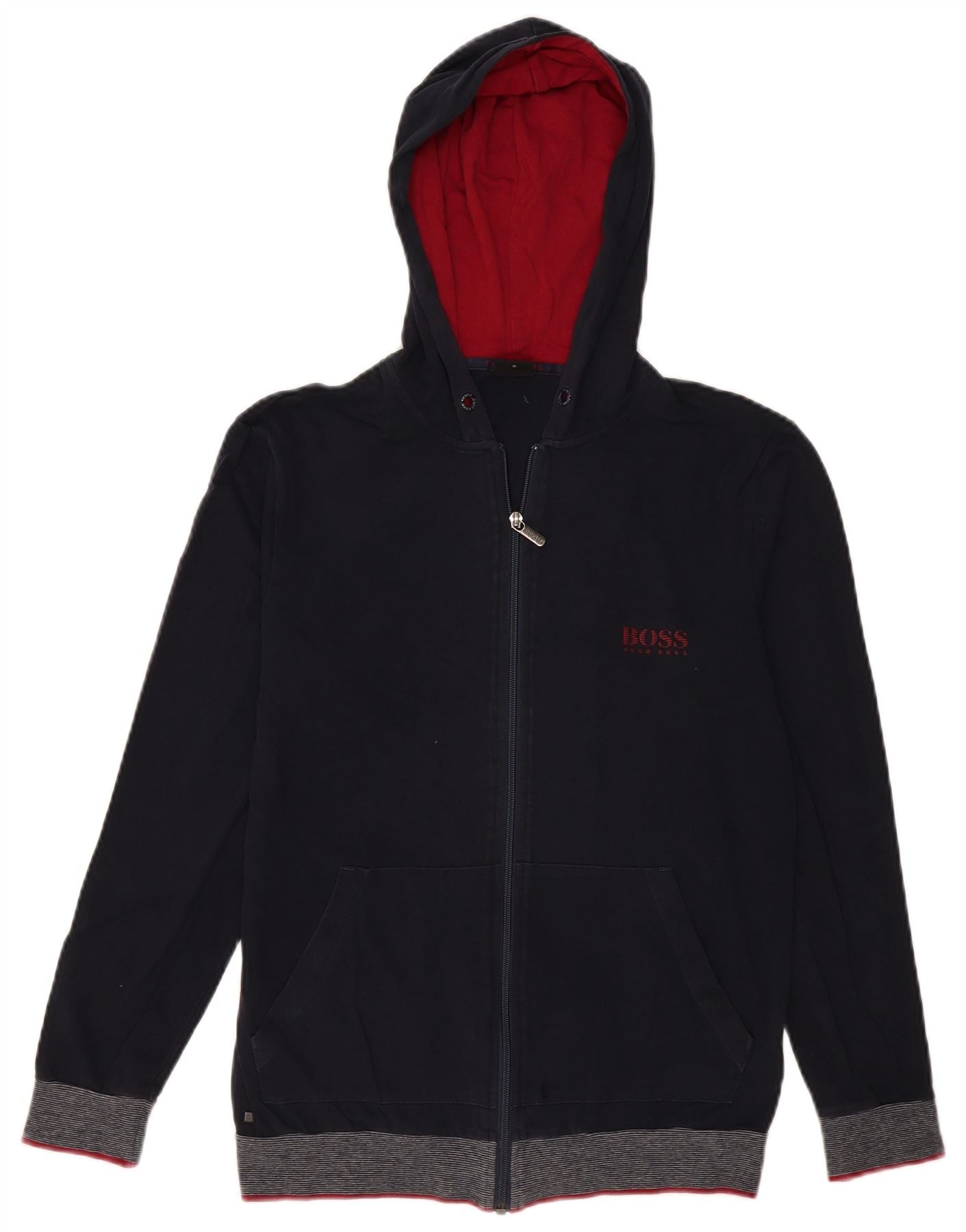 HUGO BOSS Mens Zip Hoodie Sweater Small Navy Blue Cotton