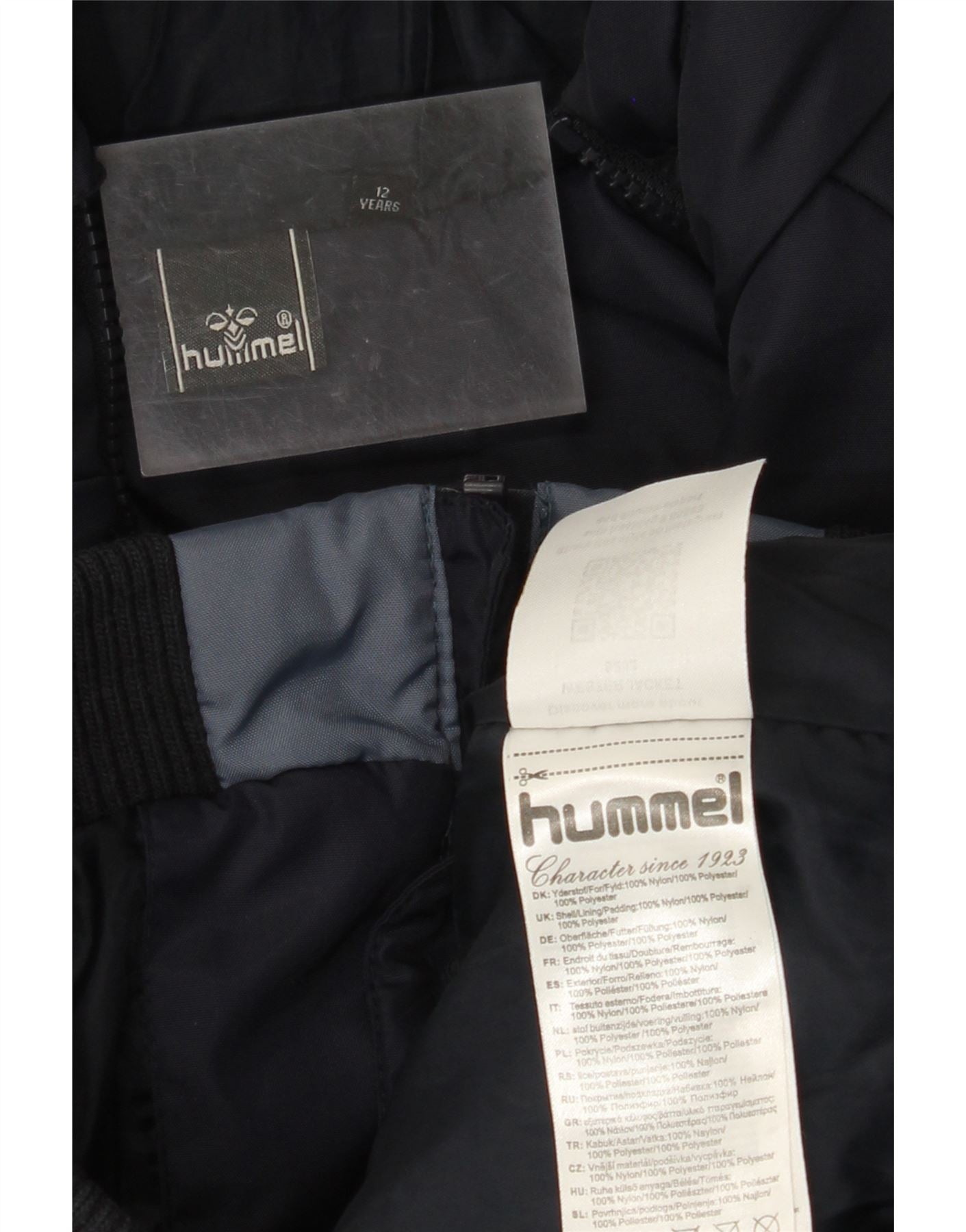 HUMMEL Boys Graphic Hooded Padded Jacket 11-12 Years Navy Blue Colourblock