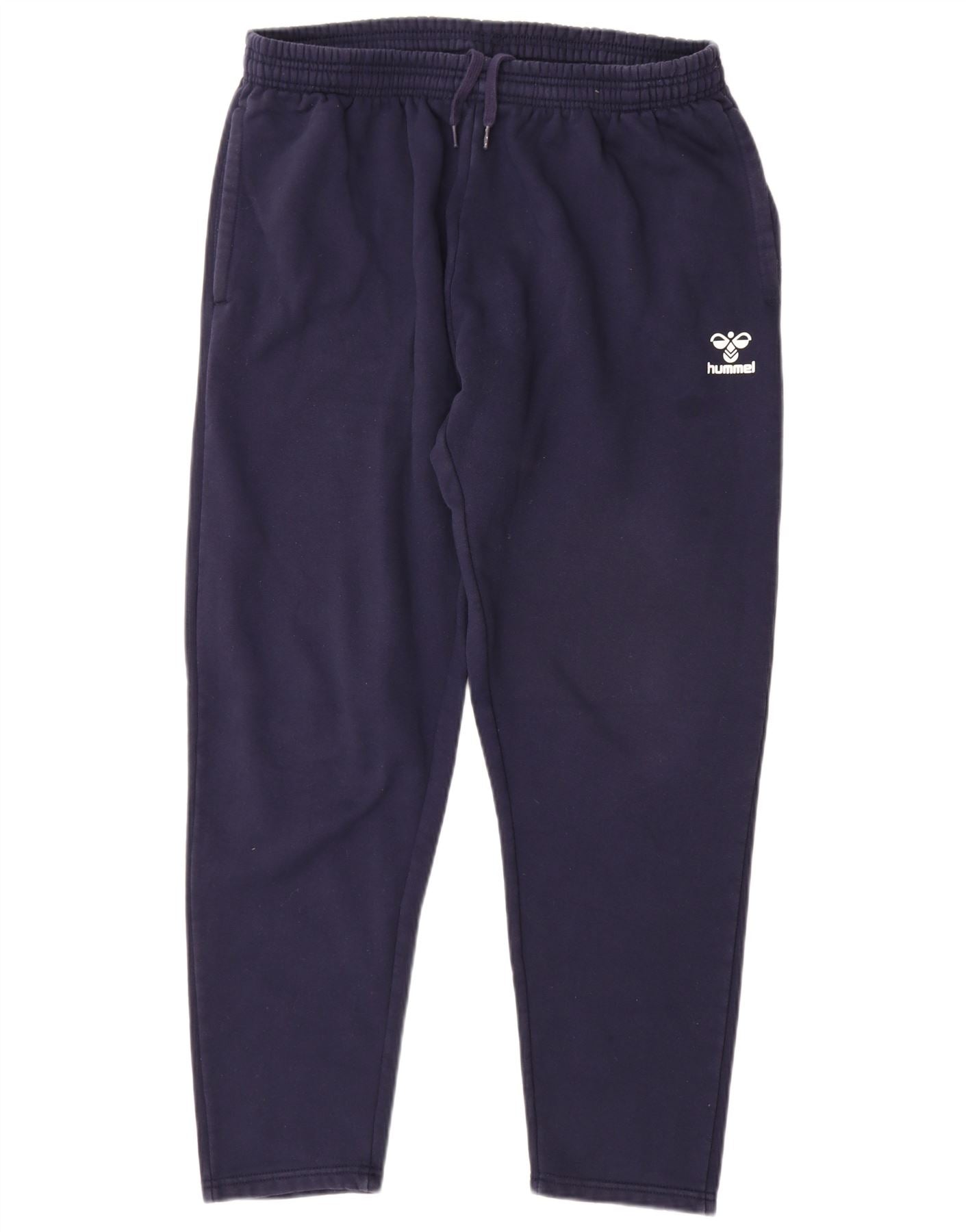 HUMMEL Mens Tracksuit Trousers Large Navy Blue Cotton