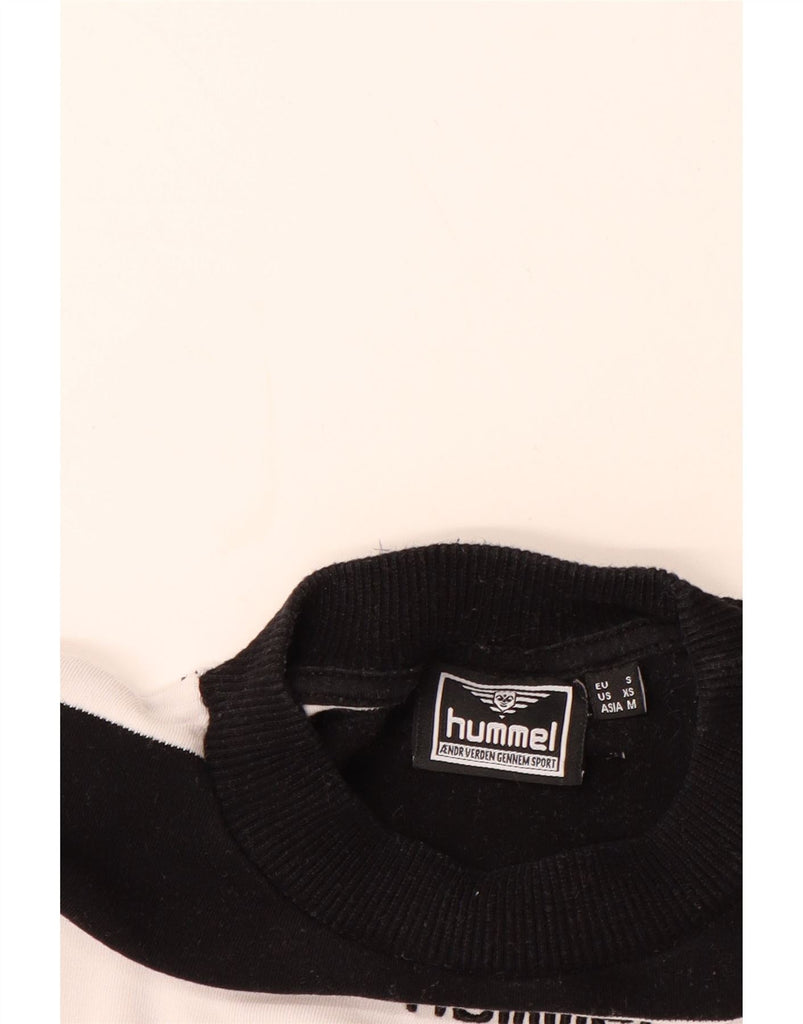 HUMMEL Womens Oversized Sweatshirt Jumper UK 6 XS Black Striped Cotton