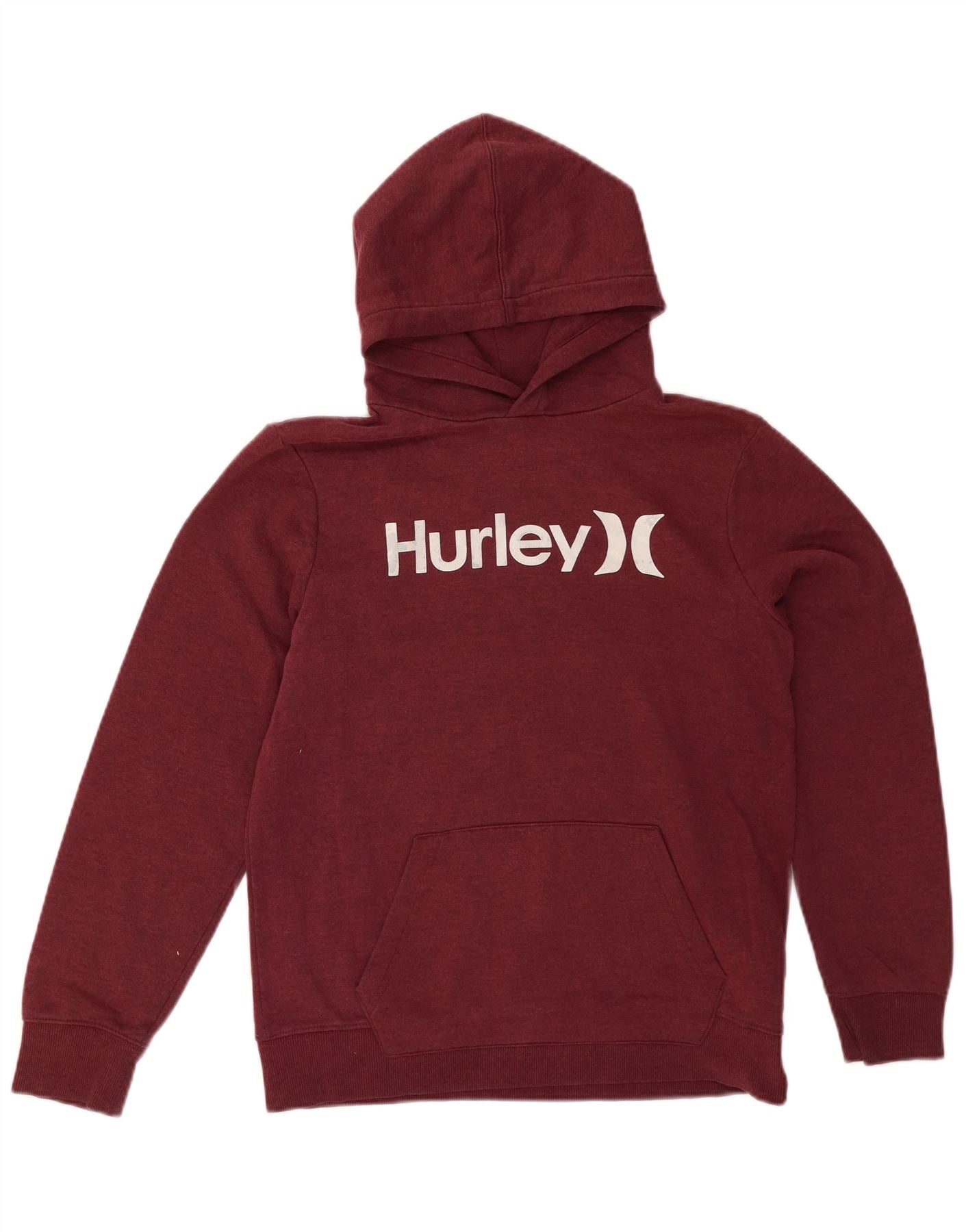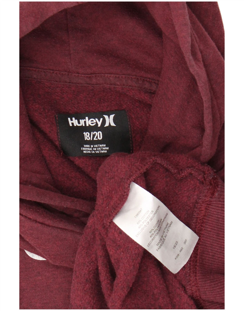 HURLEY Boys Graphic Hoodie Jumper 15-16 Years Burgundy Cotton