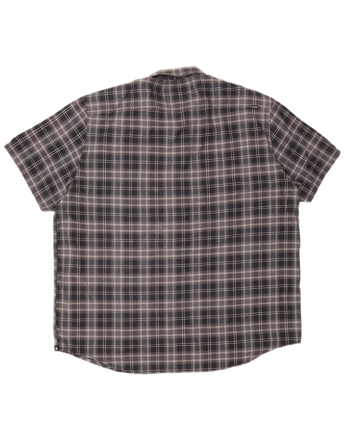 HURLEY Mens Short Sleeve Shirt 2XL Grey Check Cotton