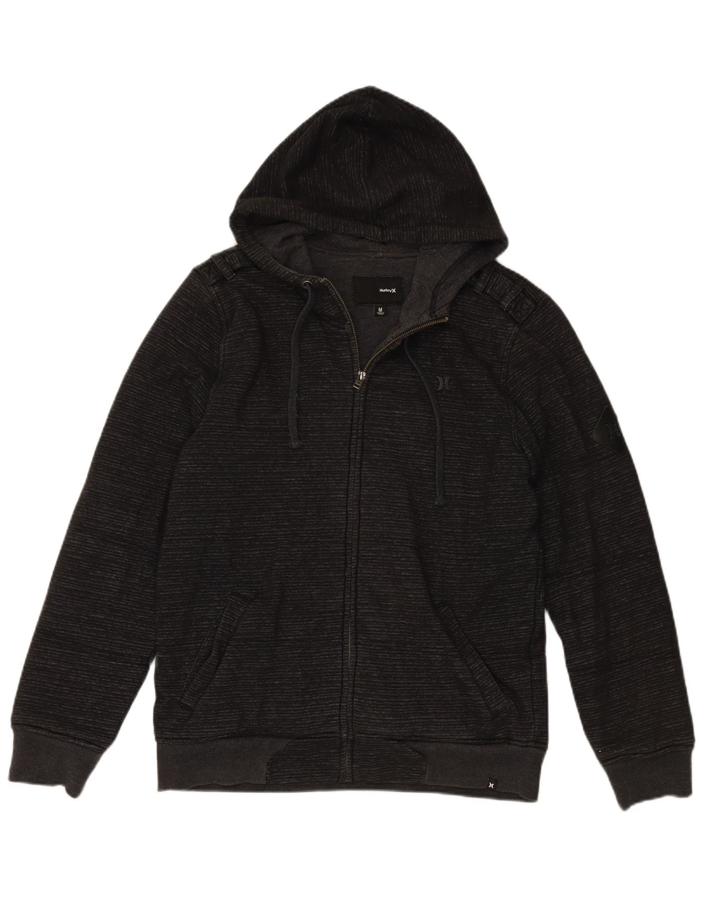 HURLEY Mens Zip Hoodie Sweater Medium Black Striped Cotton