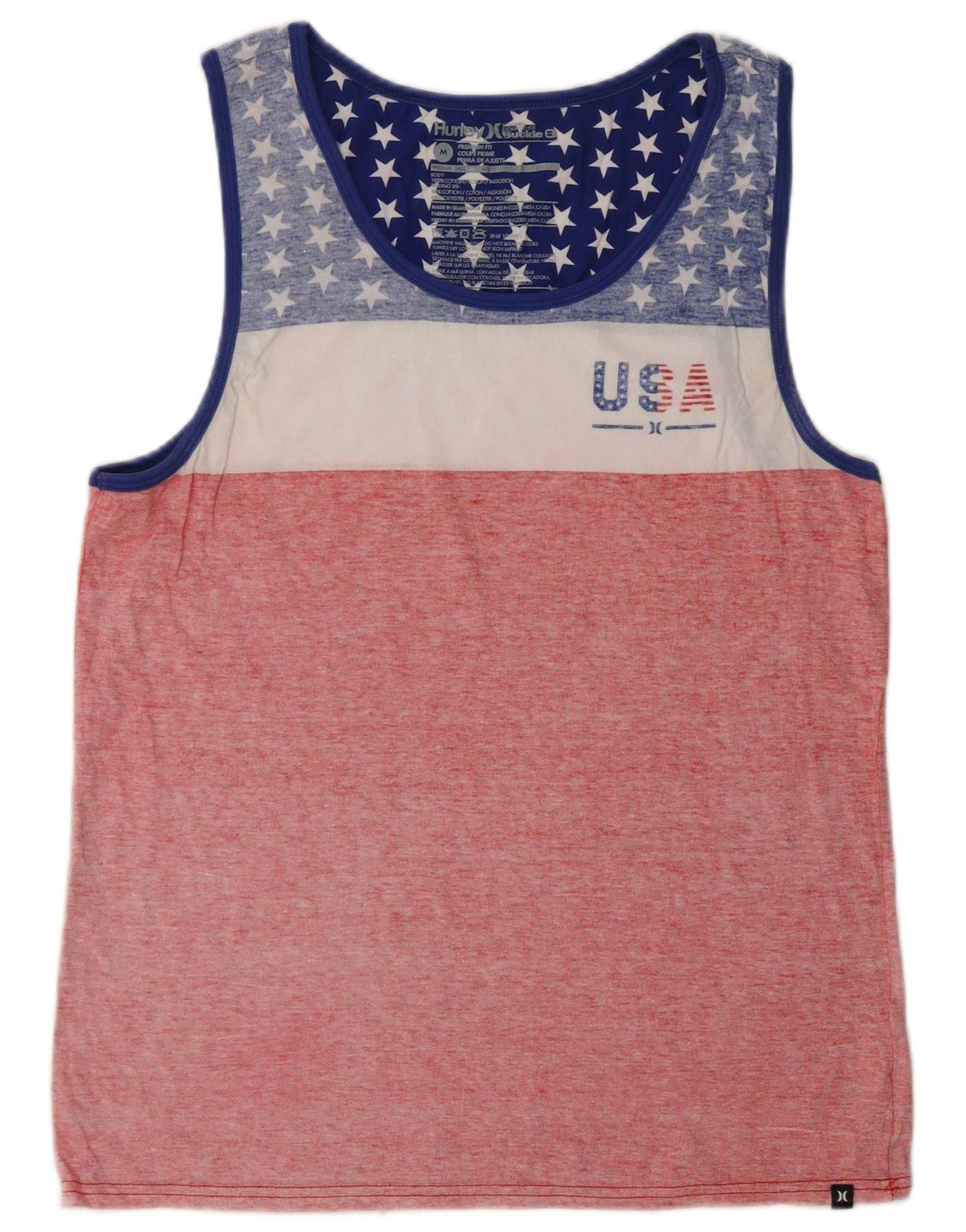 Hurley Womens USA Graphic Vest Top UK 14 Medium Pink Colourblock Cotton