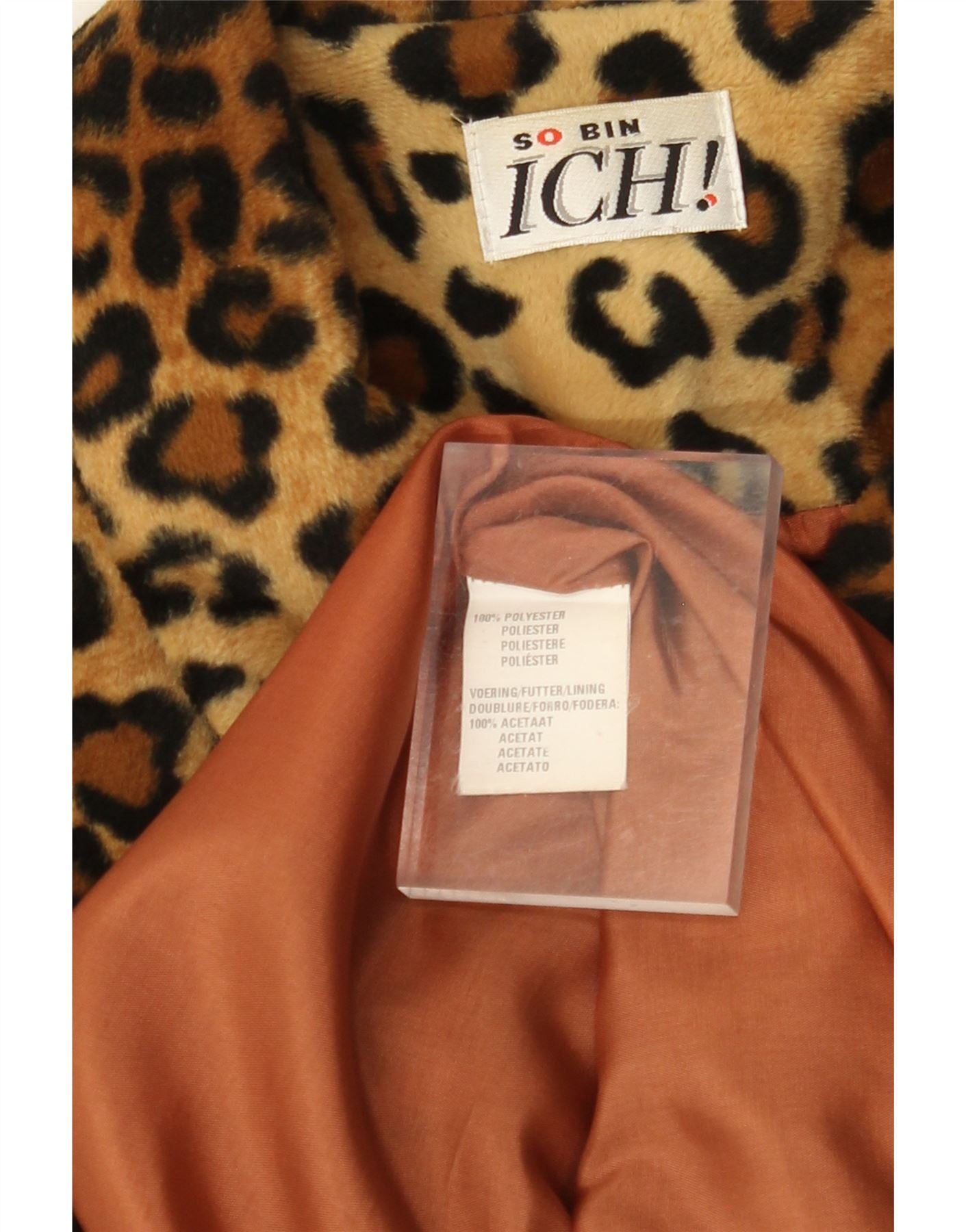 ICHI Womens Faux Fur Overcoat UK 16 Large Brown Animal Print Polyester