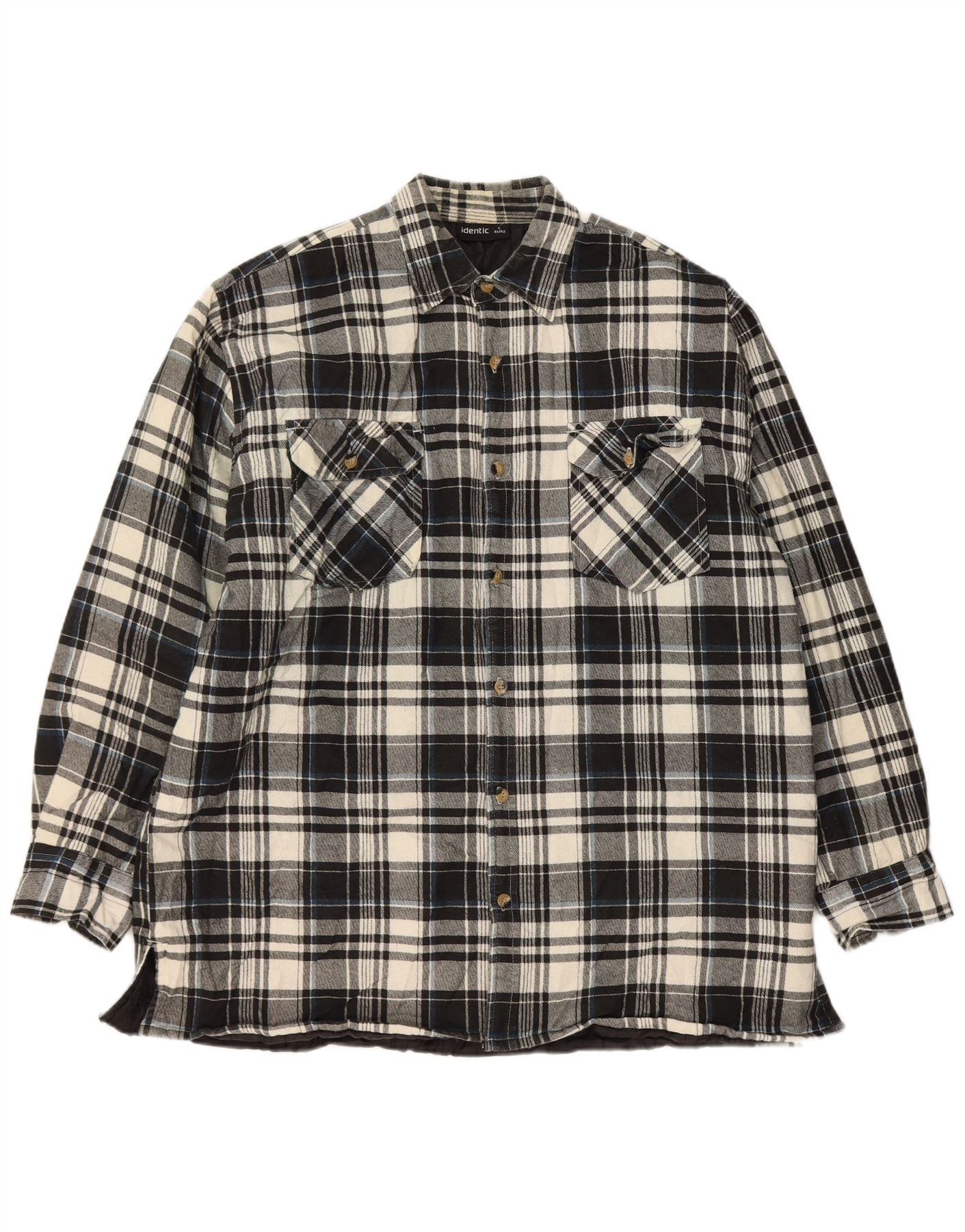 Identic Mens Lumberjack Flannel Shirt Size 41/42 Large Black Check Cotton