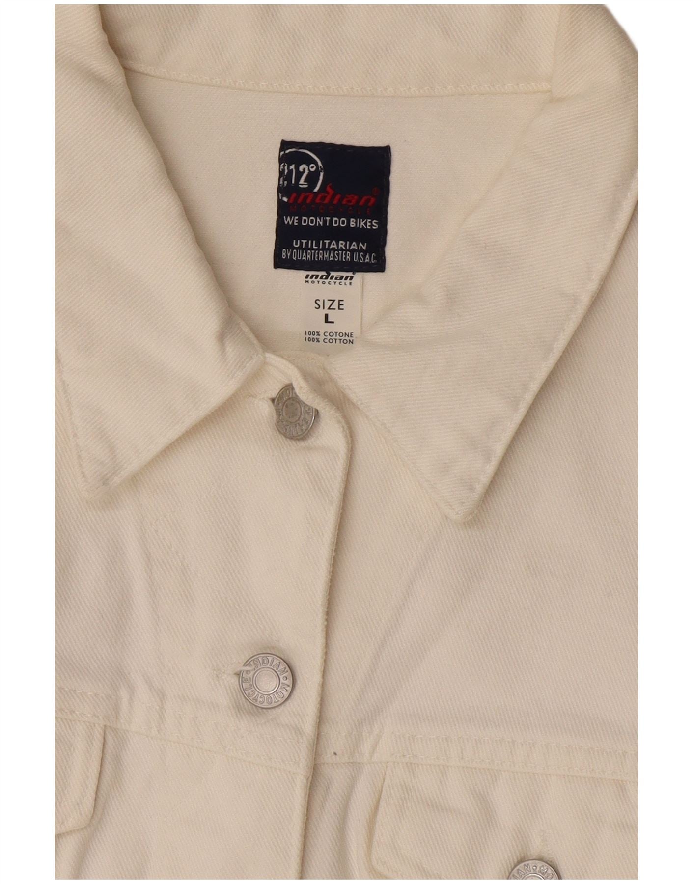 Indian Motocycle Womens Crop Denim Jacket UK 14 Large White Cotton