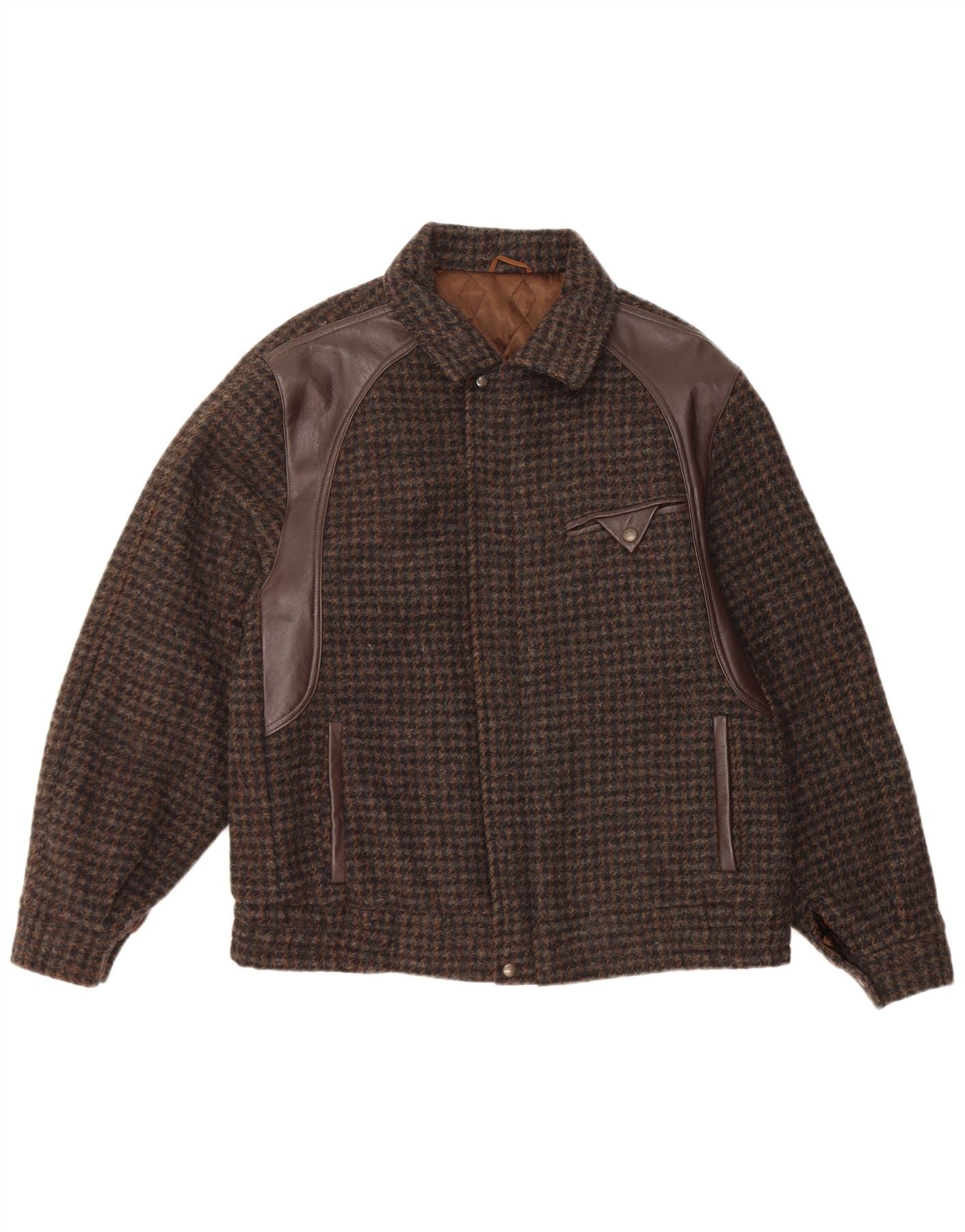 INDIOS Mens Bomber Jacket IT 48 Medium Brown Houndstooth Wool