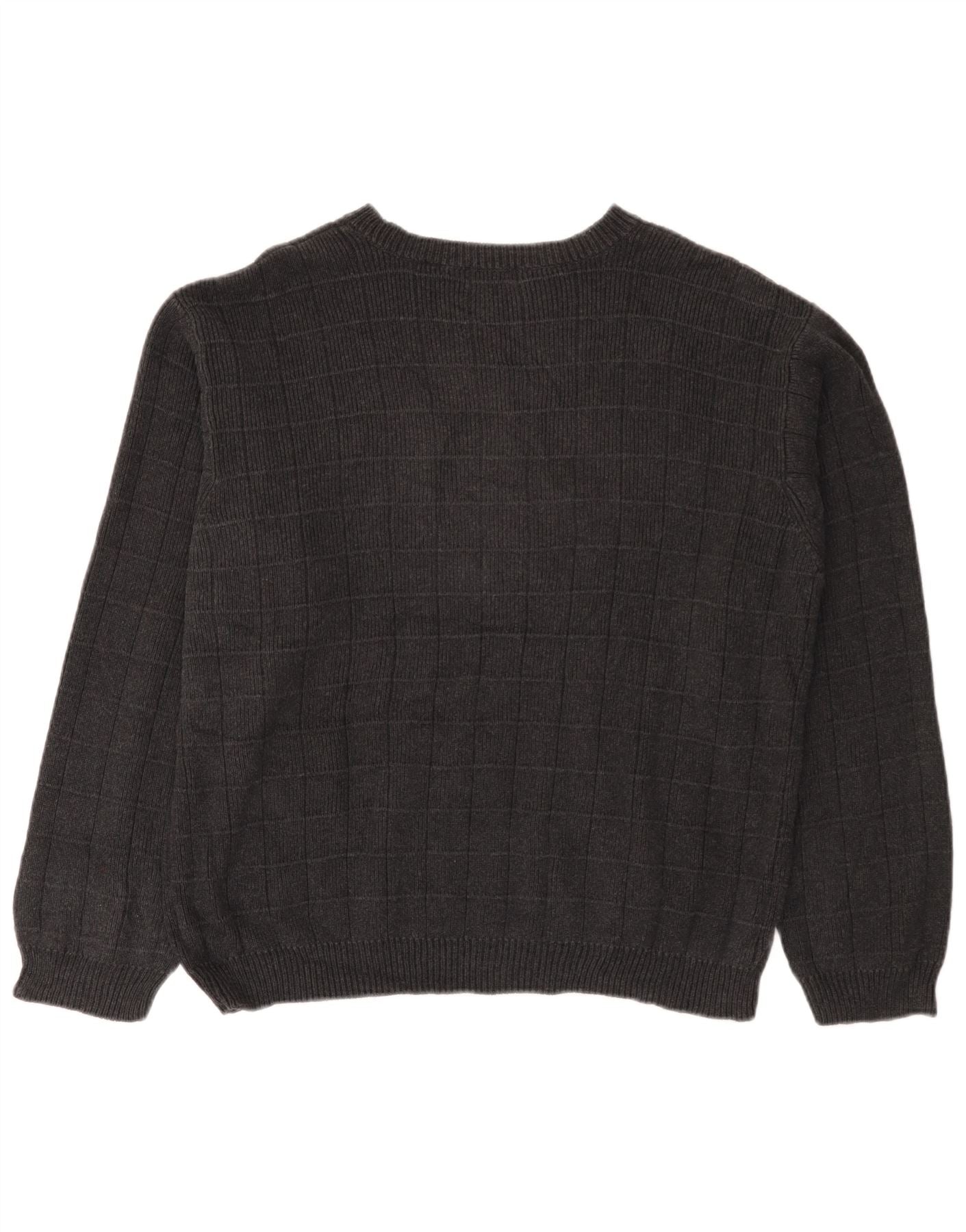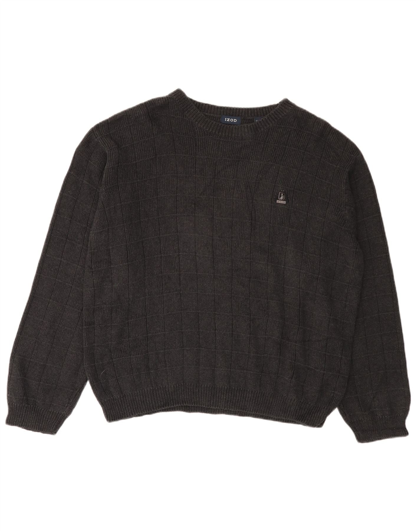 IZOD Mens Boat Neck Jumper Sweater Large Grey Check Cotton