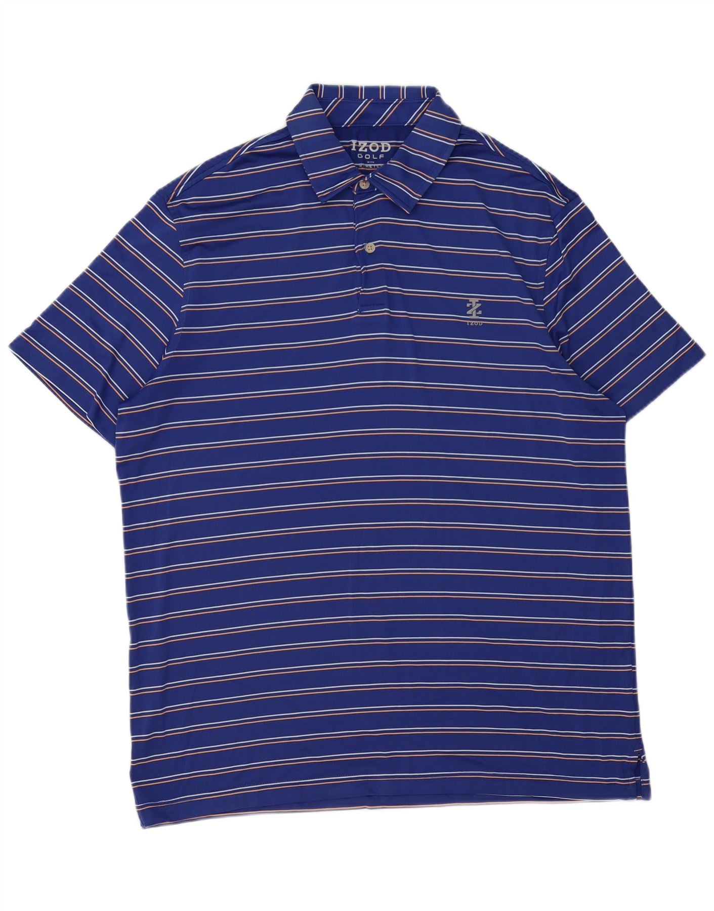 IZOD Mens Golf Polo Shirt Large Blue Striped Polyester
