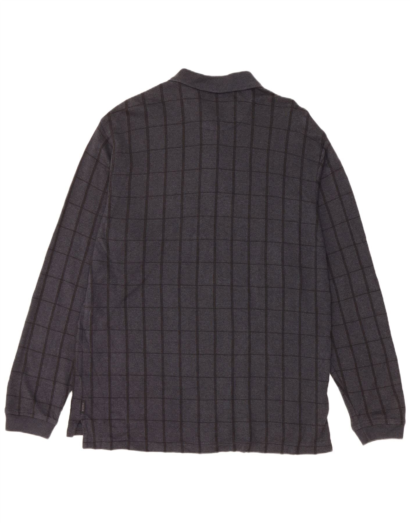 IZOD Mens Long Sleeve Polo Shirt Large Grey Check Cotton