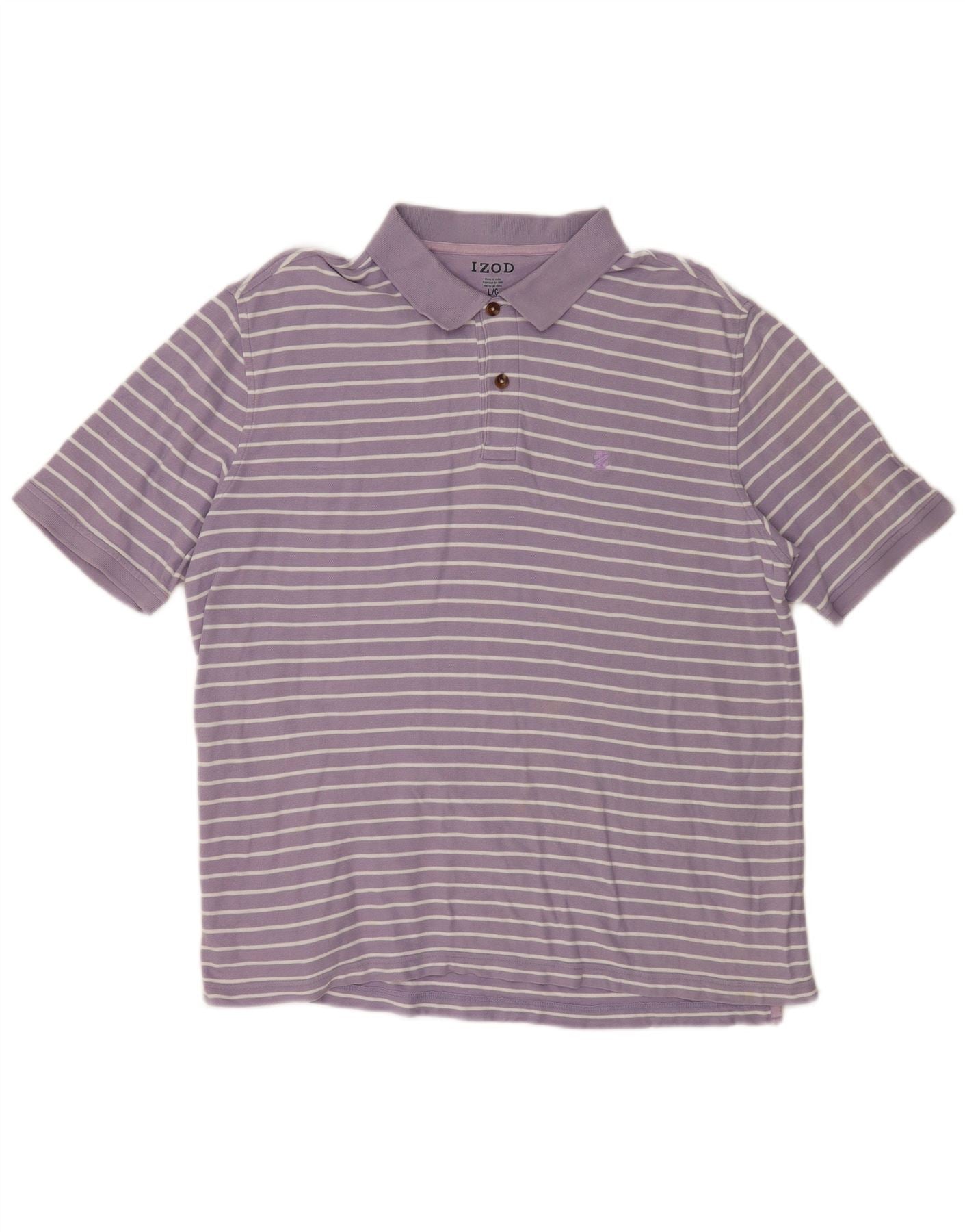 Izod Mens Polo Shirt Large Purple Striped Cotton