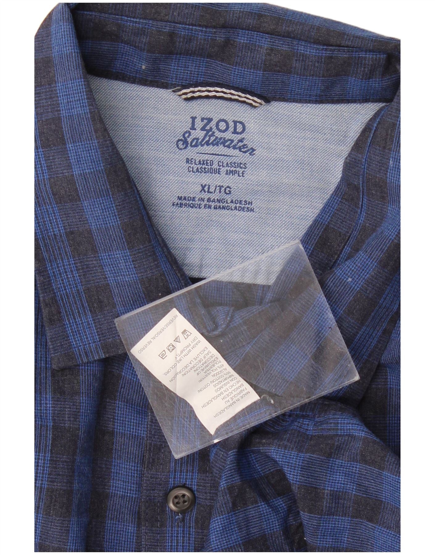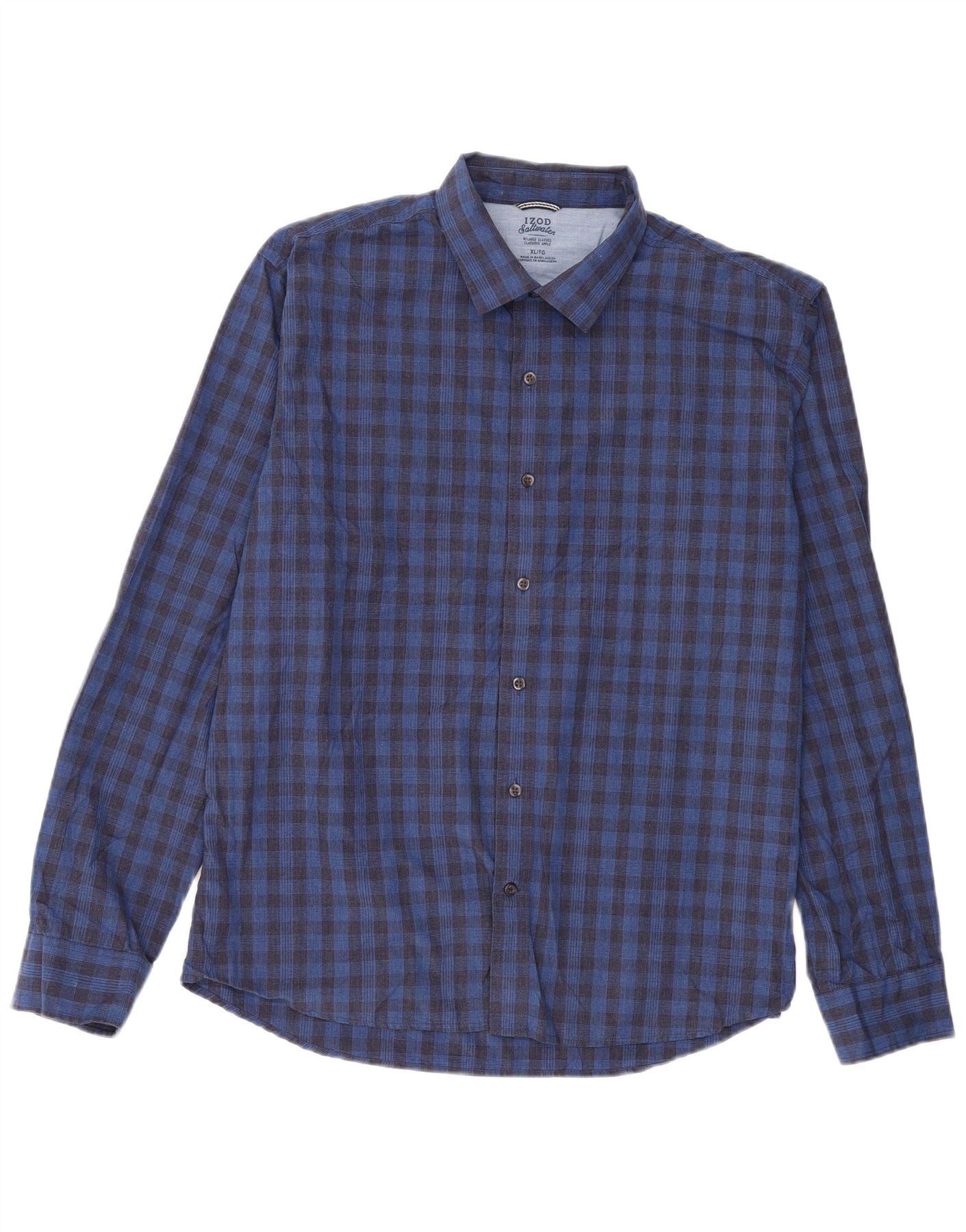 Izod Mens Relaxed Classics Relaxed Fit Shirt XL Blue Gingham Cotton Classic