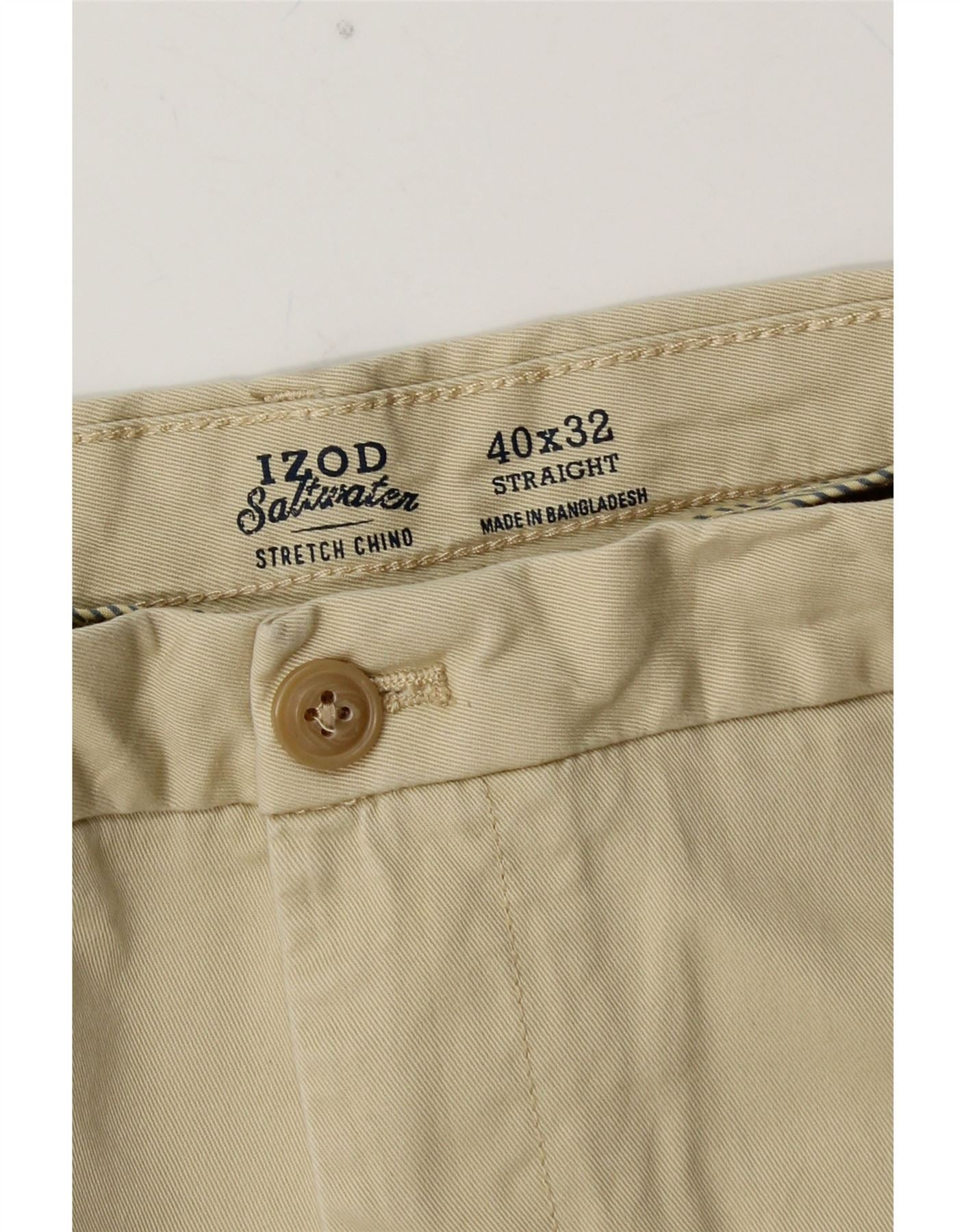 IZOD Mens Salt Water Straight Chino Trousers W40 L32 Beige Cotton
