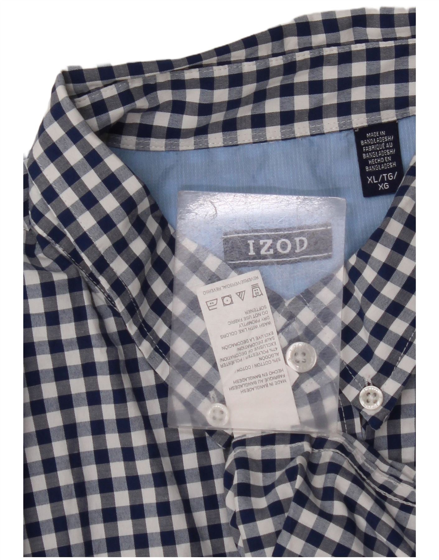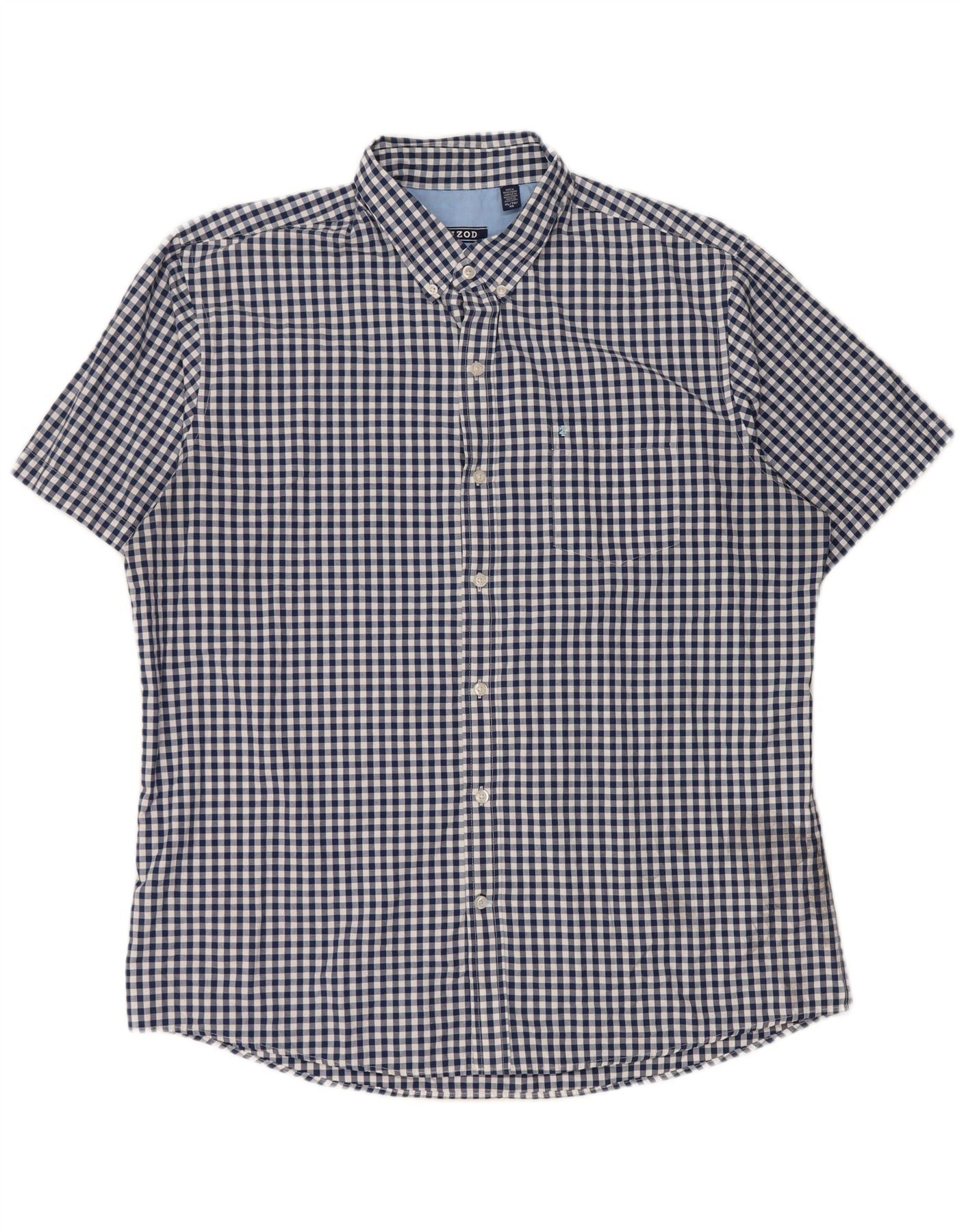 IZOD Mens Short Sleeve Shirt XL Blue Gingham Cotton