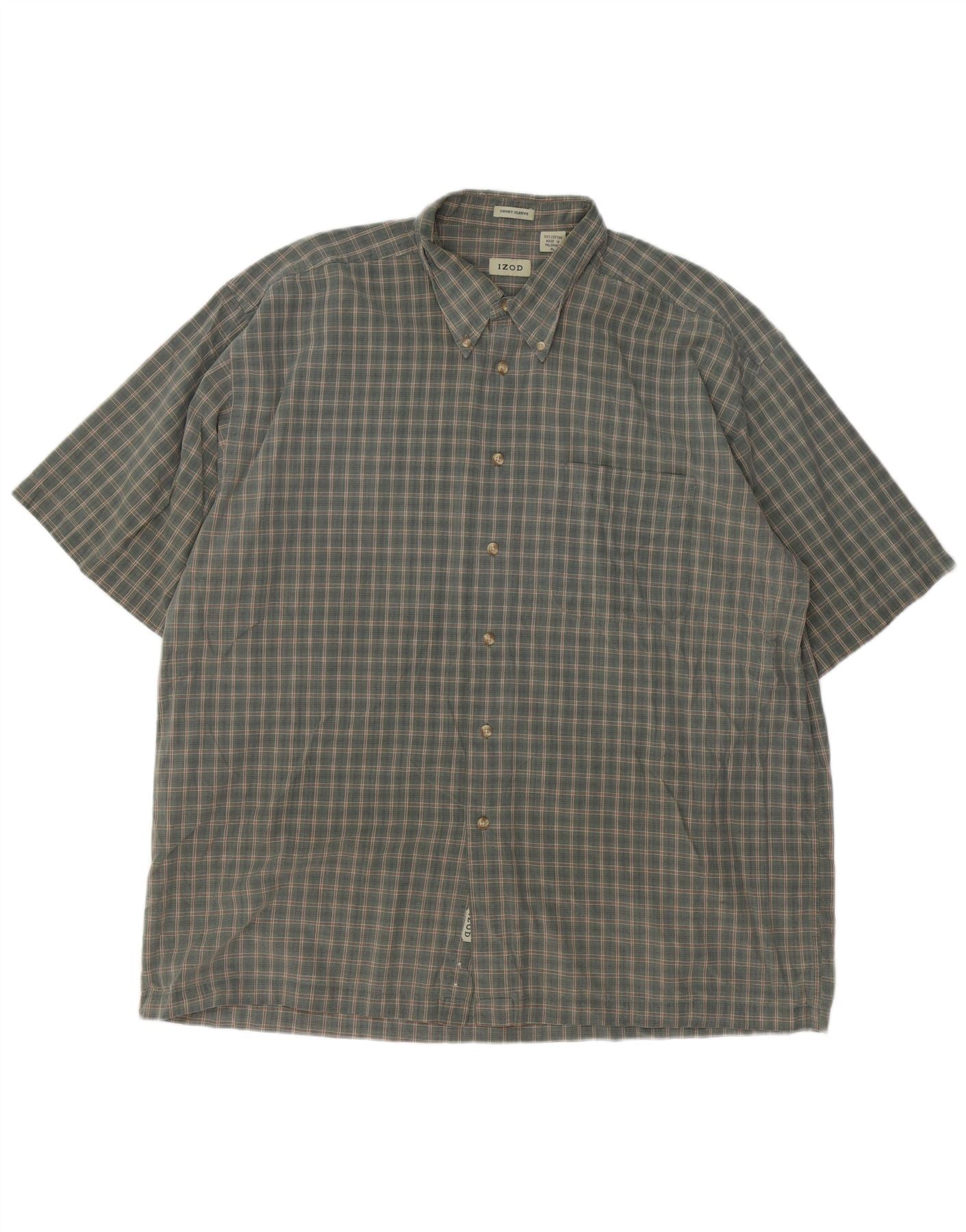 IZOD Mens Short Sleeve Shirt XL Khaki Check Cotton