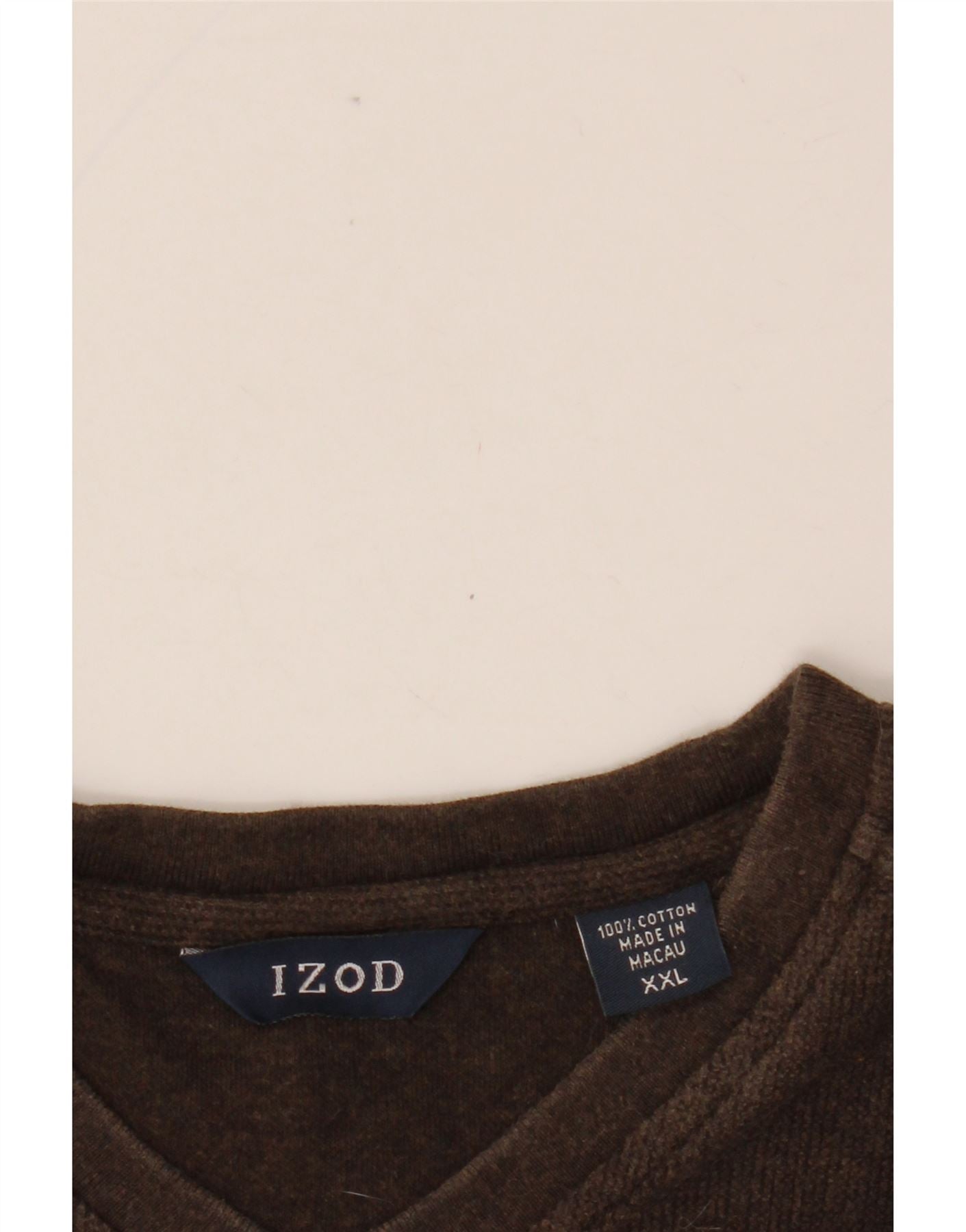 IZOD Mens Top Long Sleeve 2XL Brown Colourblock Cotton