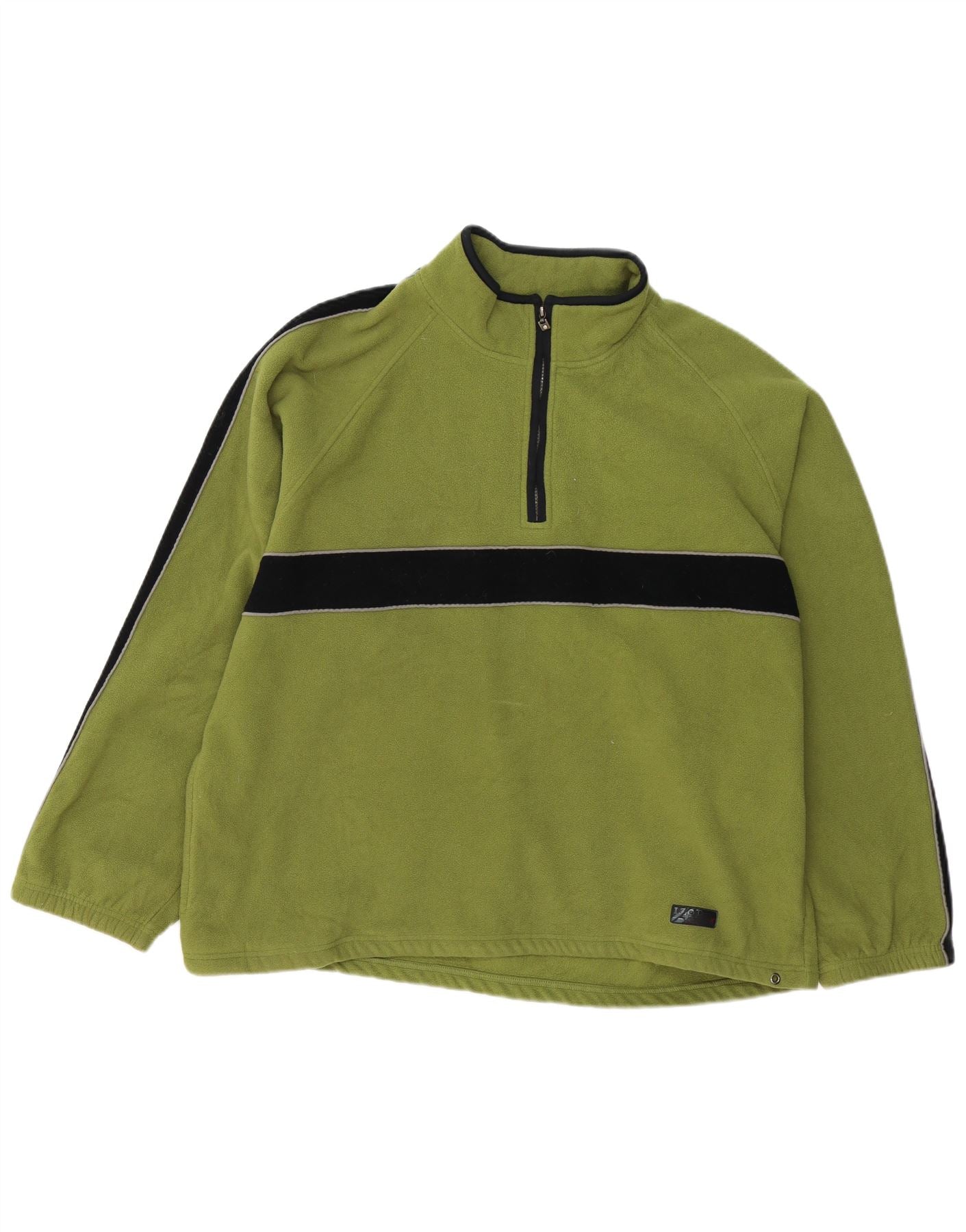IZOD Mens Zip Neck Fleece Jumper 2XL Green Colourblock Polyester