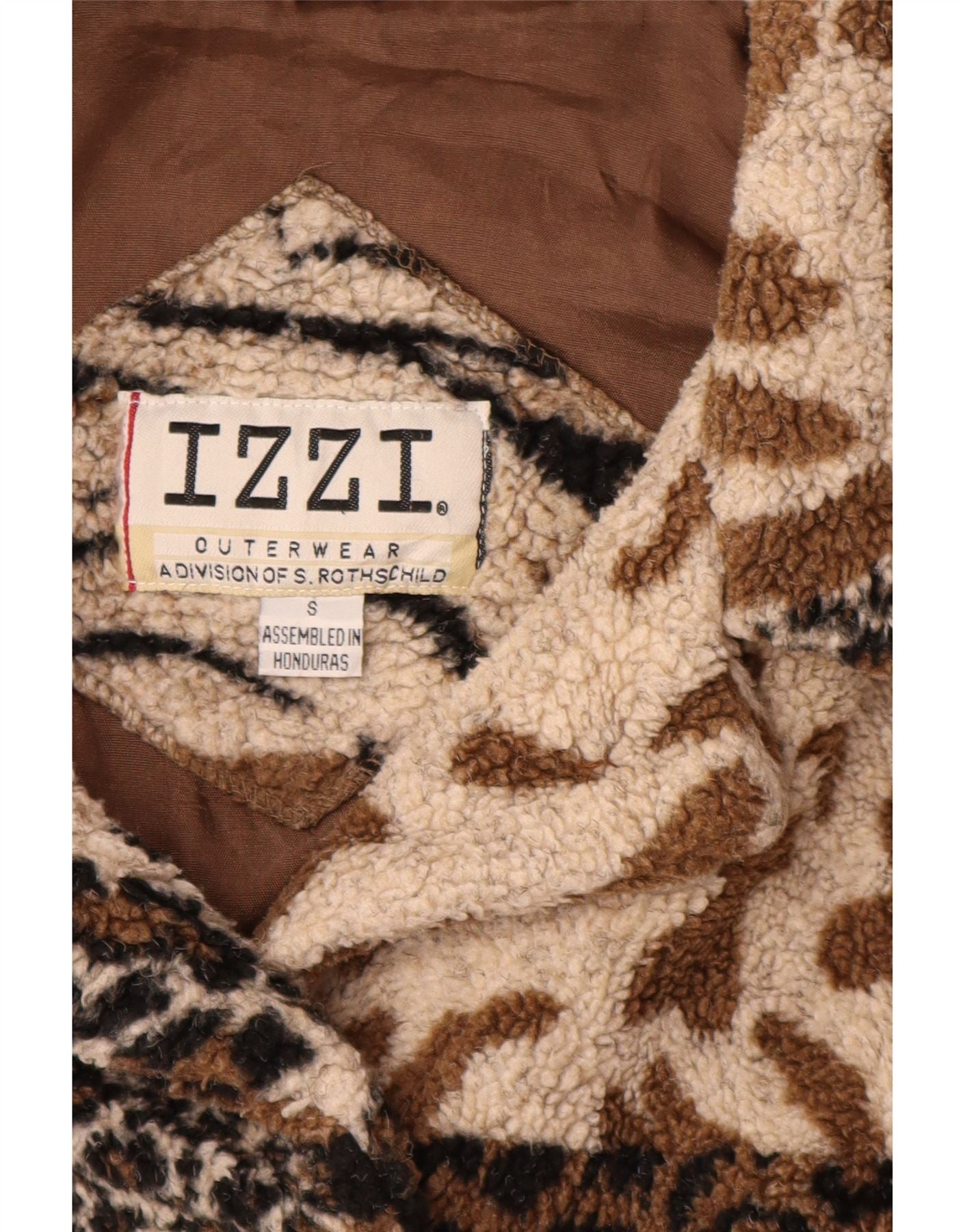IZZI Womens Oversized Fleece Jacket UK 10 Small Brown Animal Print Acrylic
