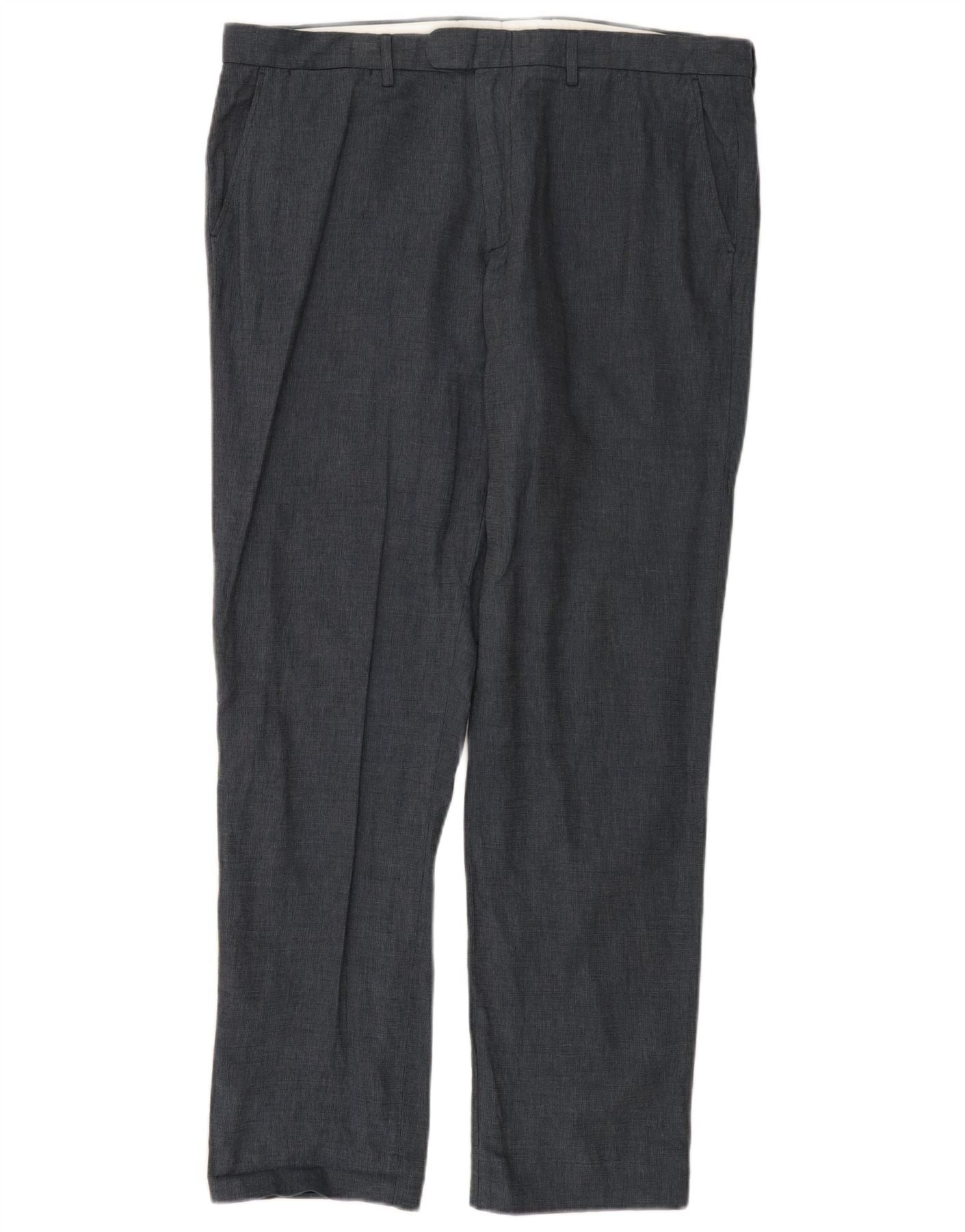 J. CREW Mens BOWERY Straight Suit Trousers W36 L32 Navy Blue Linen