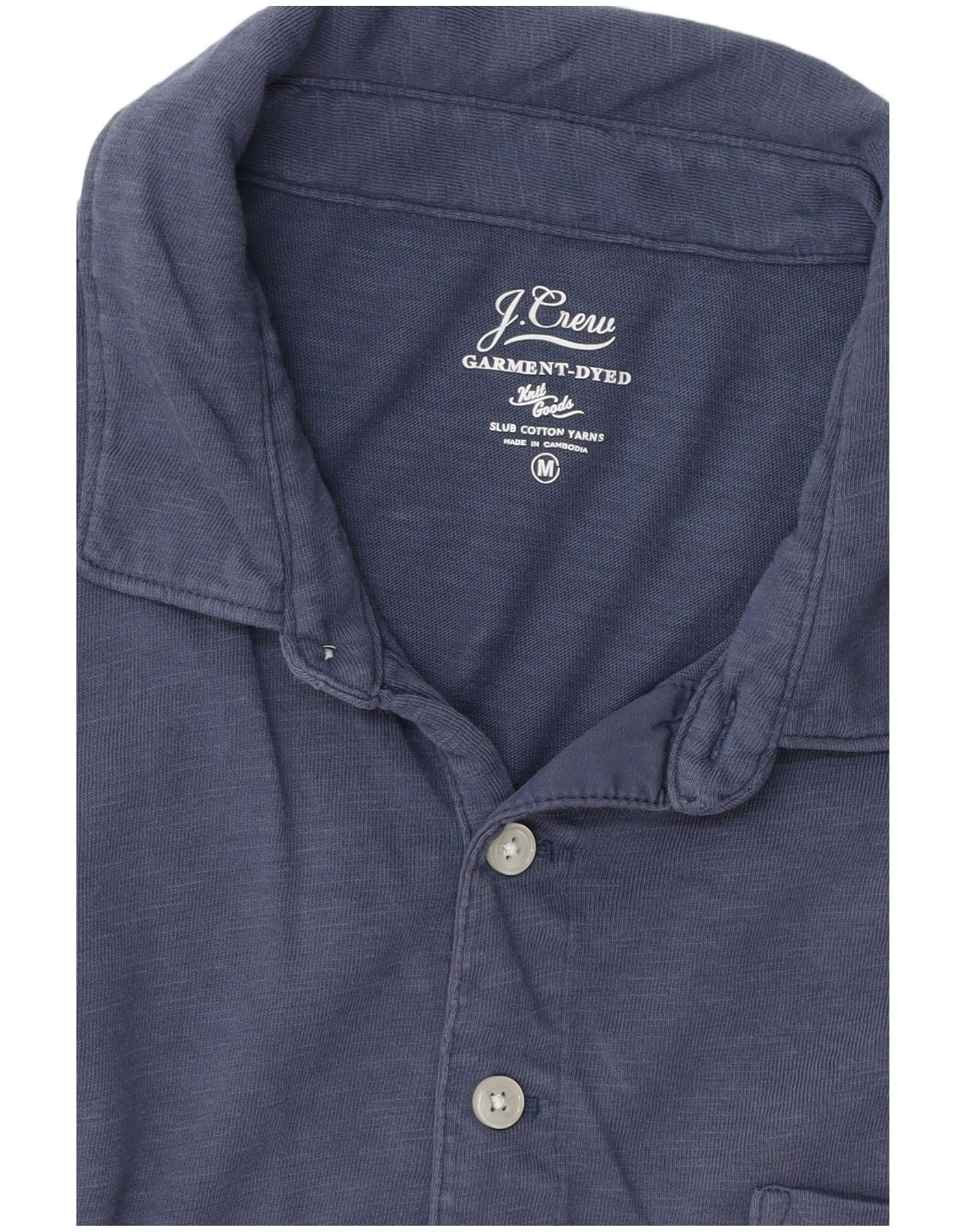 - AI Description: This J. Crew men's Polo Shirt is crafted from soft blue slub cotton jersey. The garment-dyed finish gives it a subtle, lived-in texture. It features a classic collared neckline and a three-button placket. Short sleeves and a regular fit ensure comfortable wear. A single chest pocket adds a practical, casual detail.
