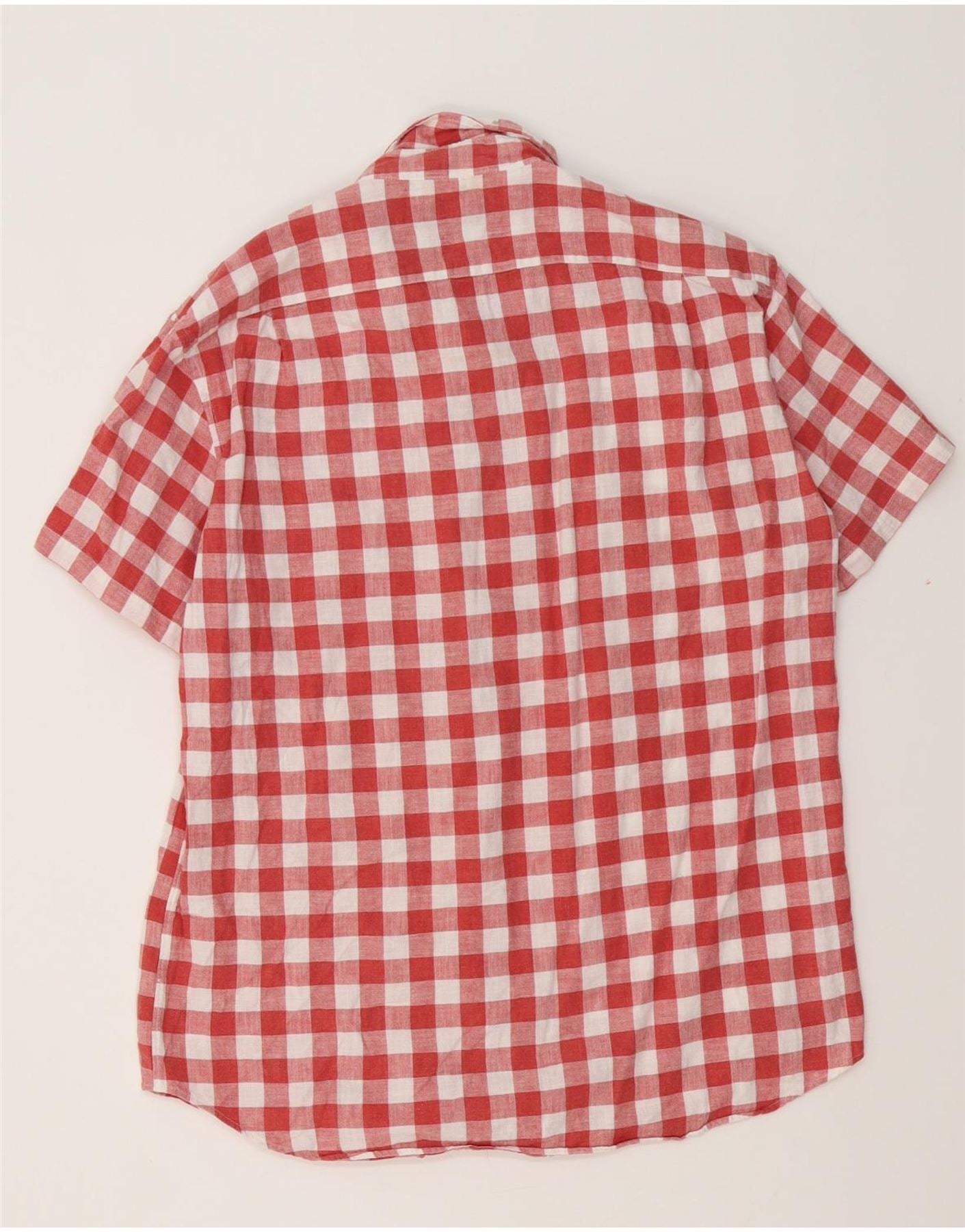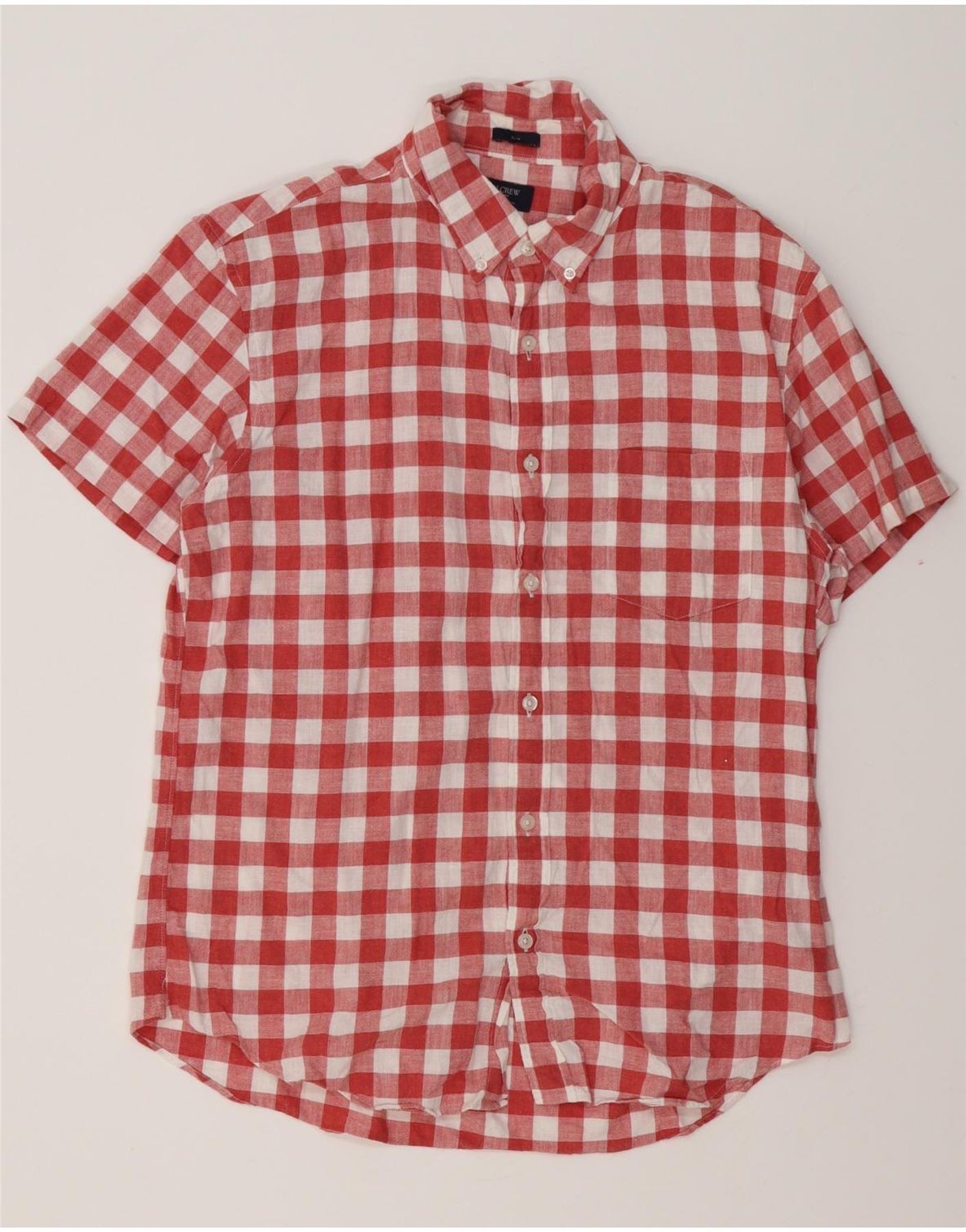 J. CREW Mens Slim Short Sleeve Shirt Large Red Check Cotton