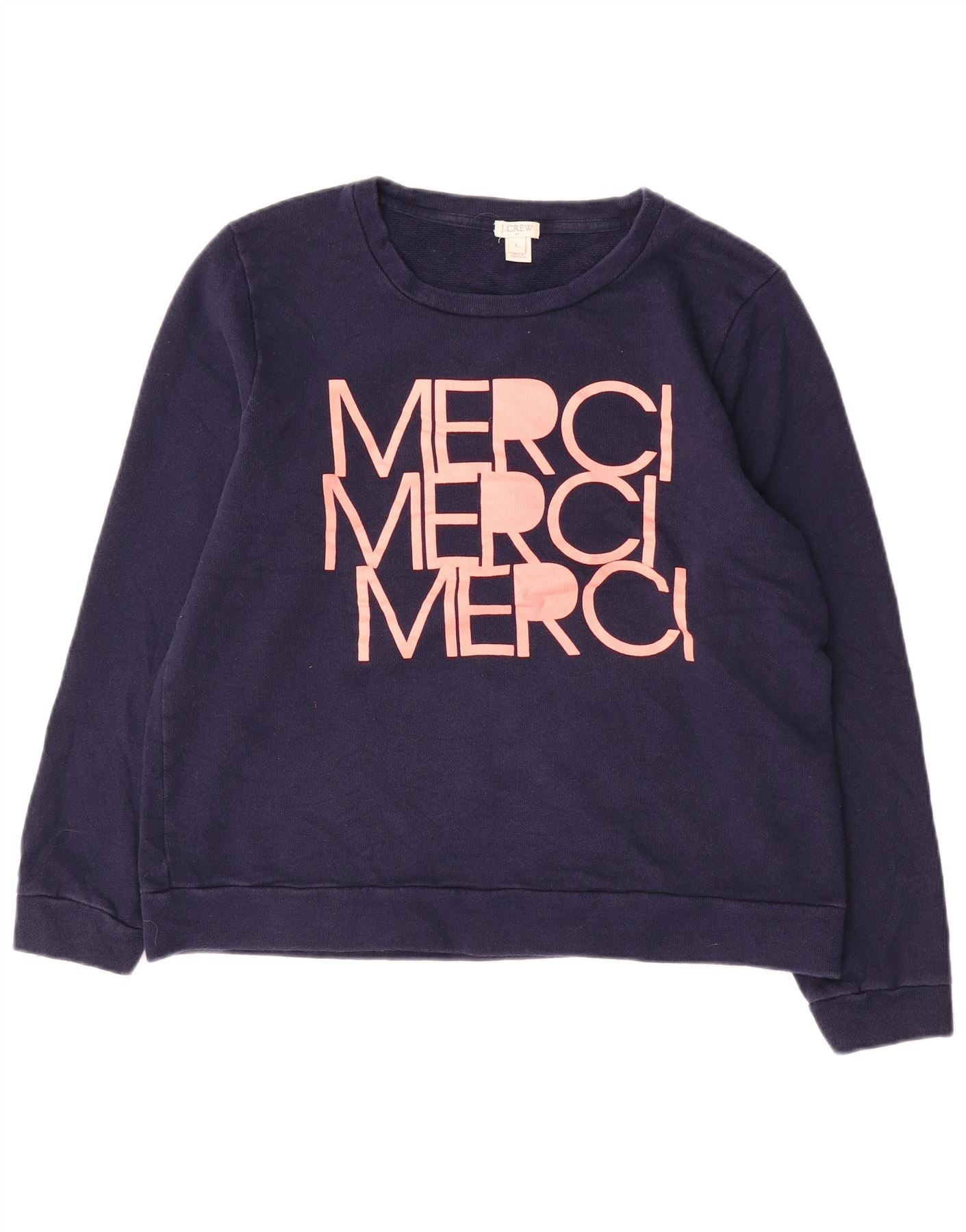 J. CREW Womens Graphic Sweatshirt Jumper UK 16 Large Navy Blue Cotton