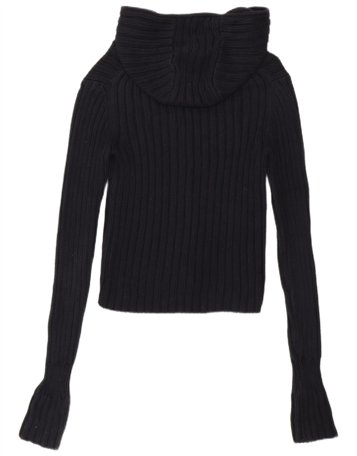 J. CREW Womens Hooded Cardigan Sweater UK 6 XS Navy Blue Cotton