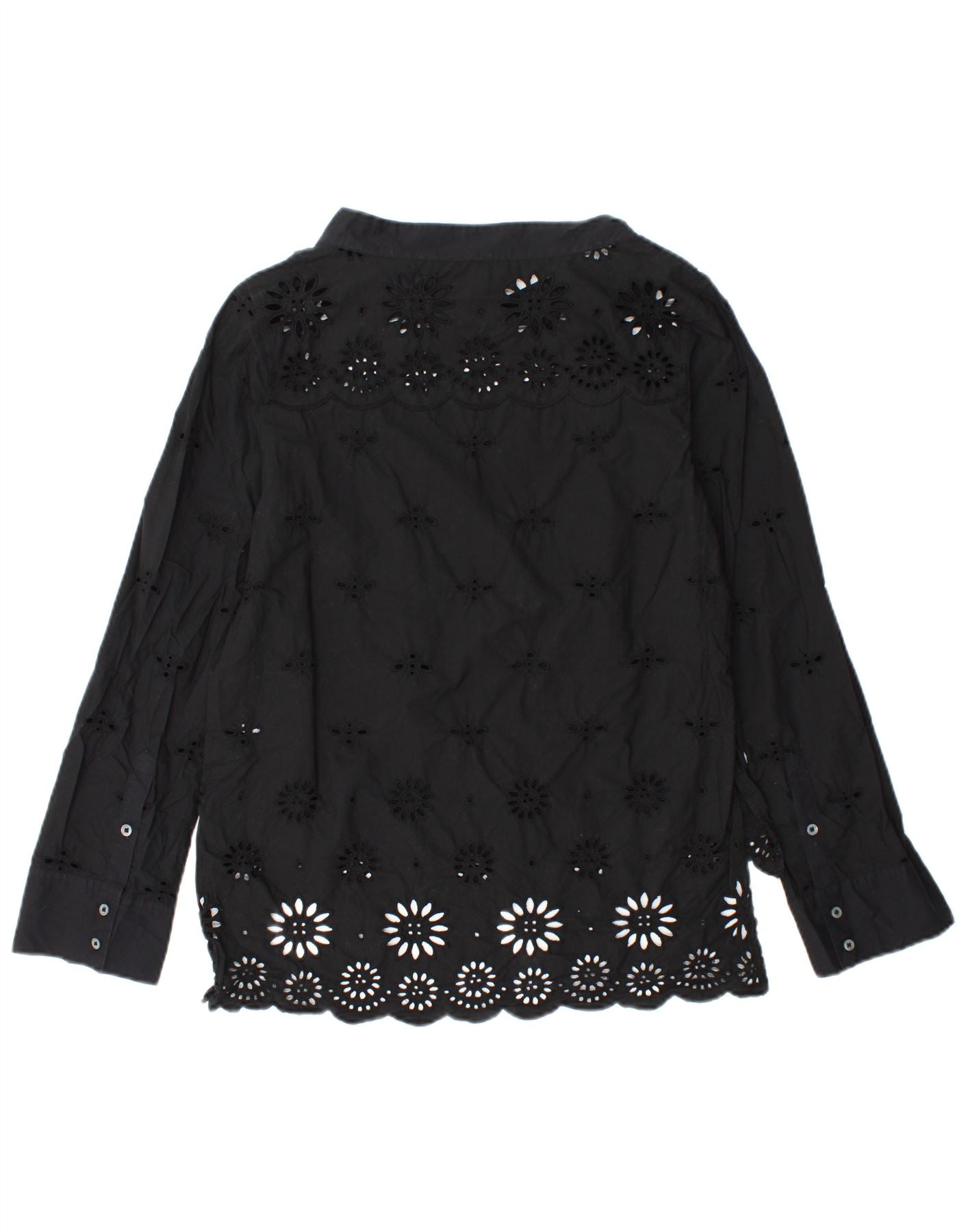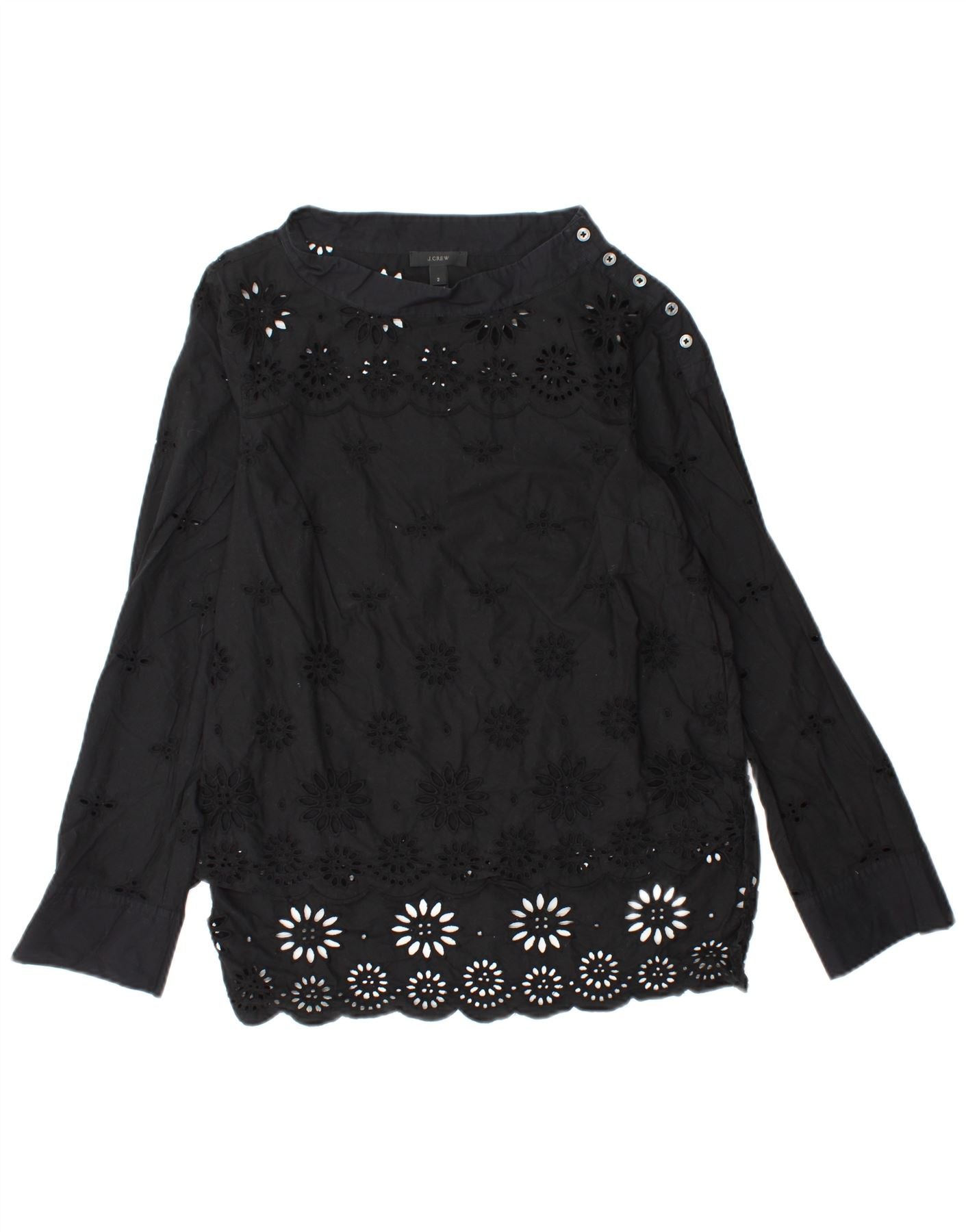J. CREW Womens Long Sleeve Blouse Top US 2 XS Black Floral Cotton