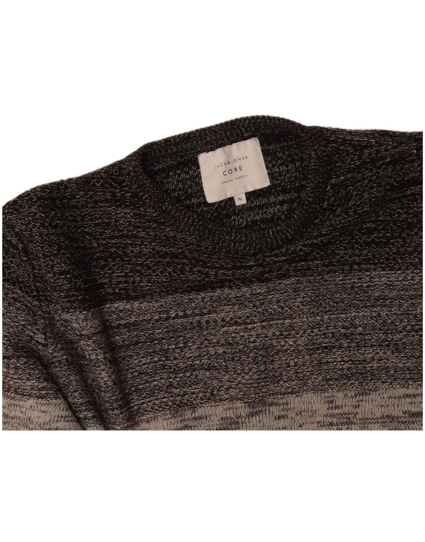 JACK & JONES Mens Crew Neck Jumper Sweater XL Grey Striped Cotton