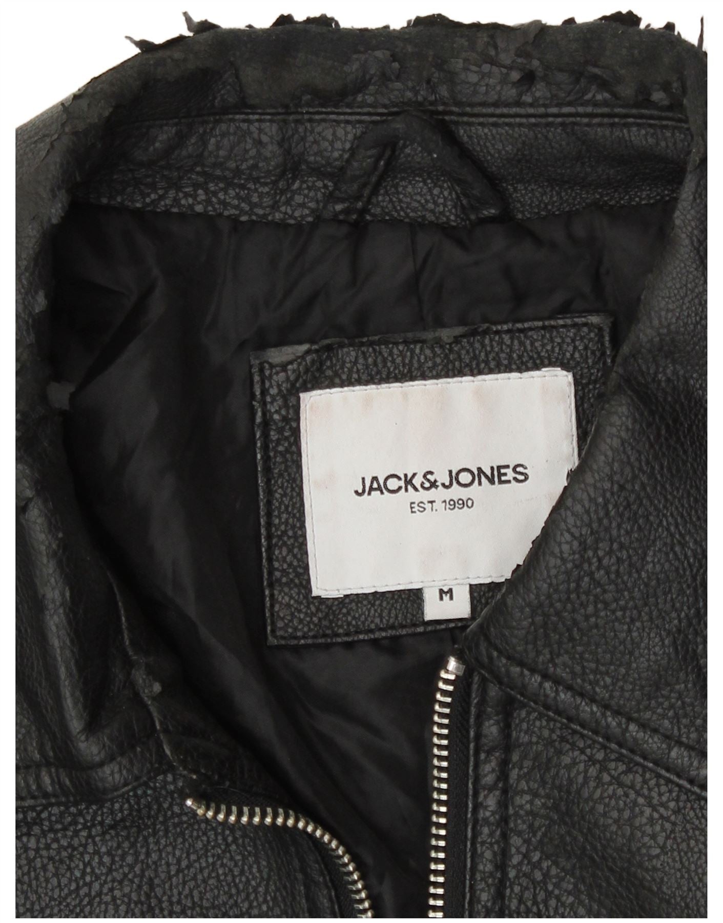 Jack & Jones Mens Faux Leather Jacket UK 38 Medium Black Polyester