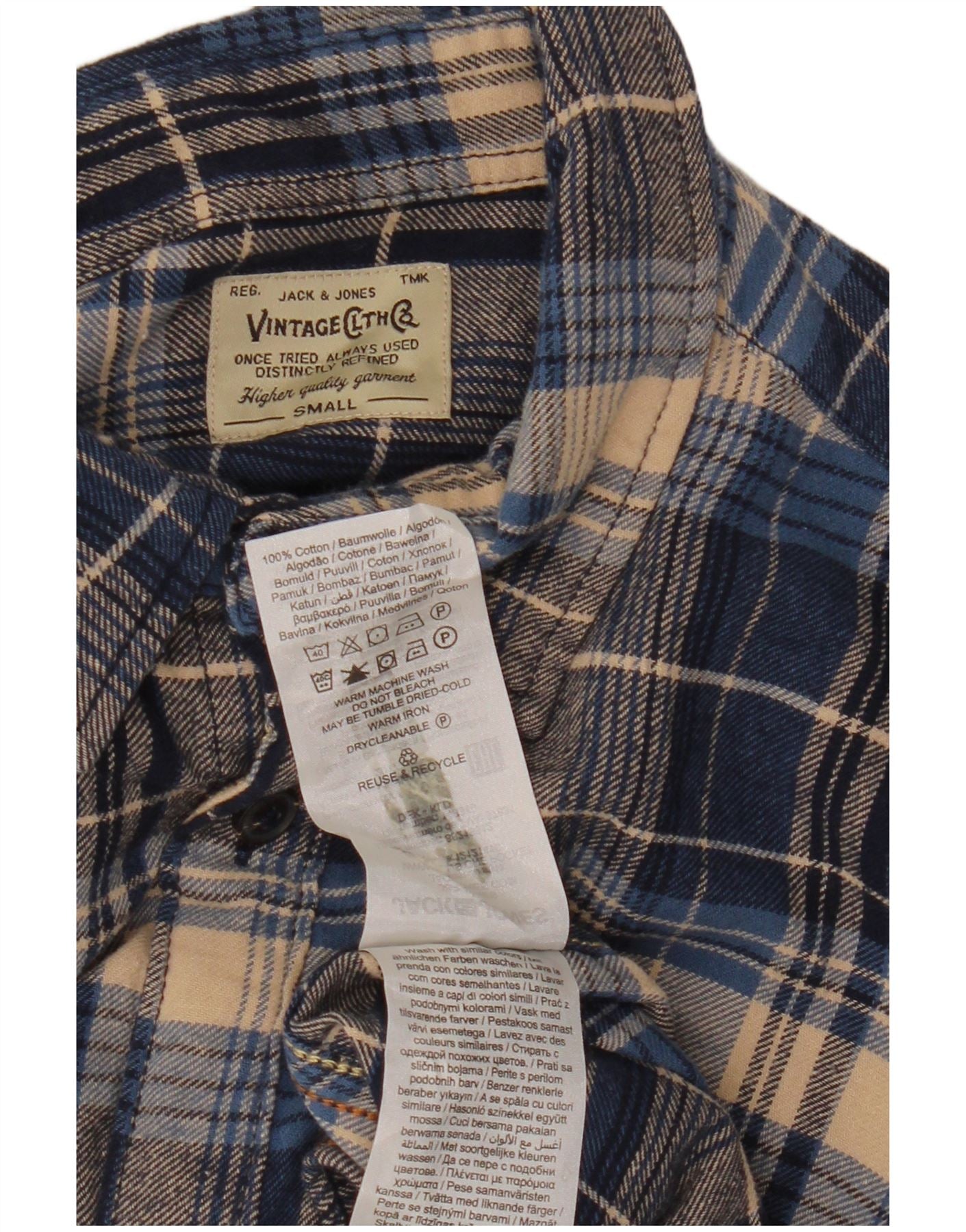 JACK & JONES Mens Flannel Shirt Small Blue Check Cotton