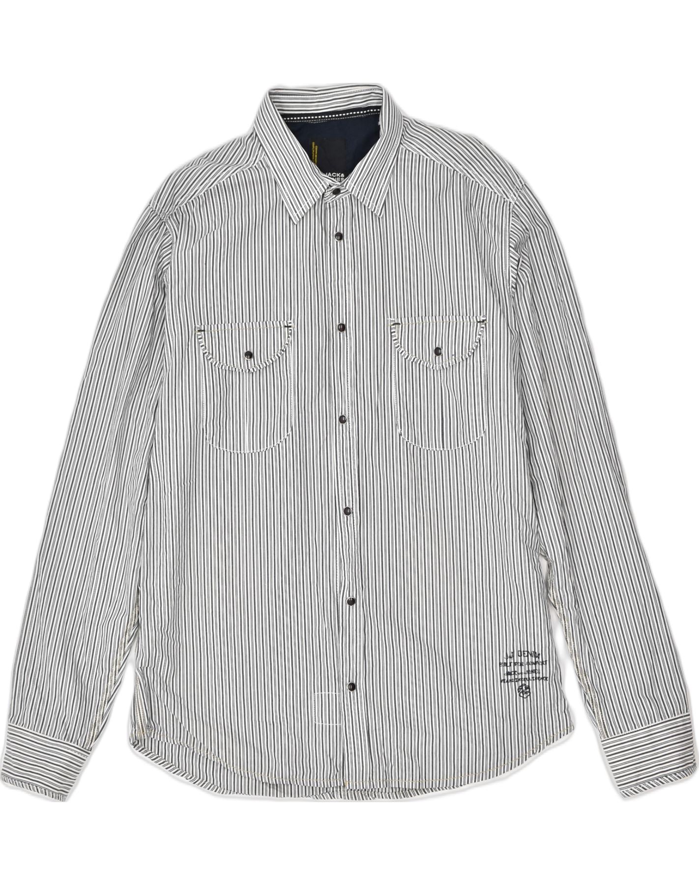 JACK & JONES Mens Graphic Shirt Large Grey Striped