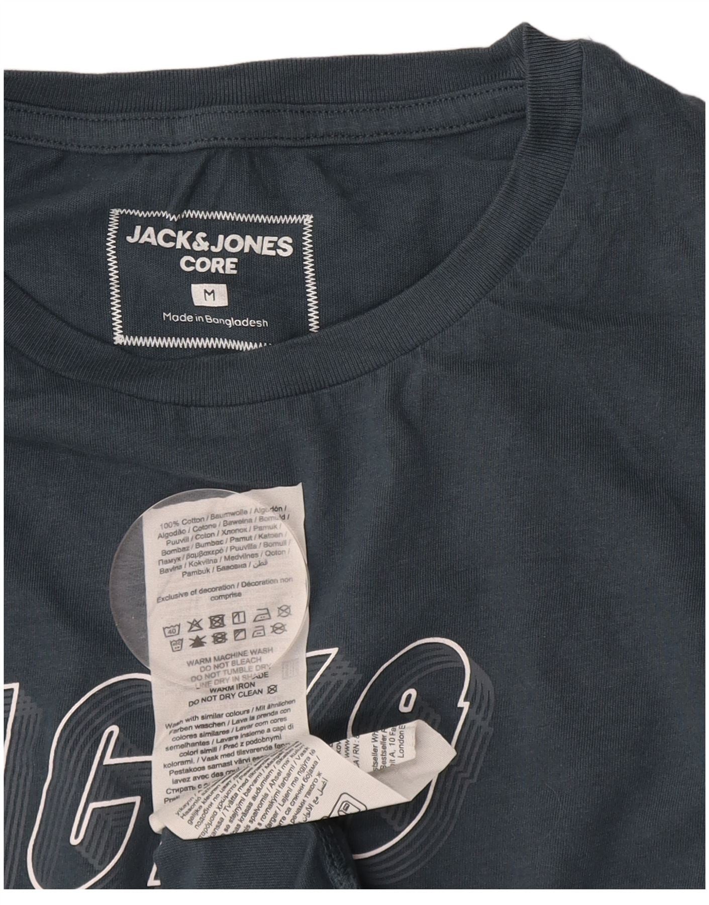 JACK & JONES Mens Graphic T-Shirt Top Medium Navy Blue Cotton