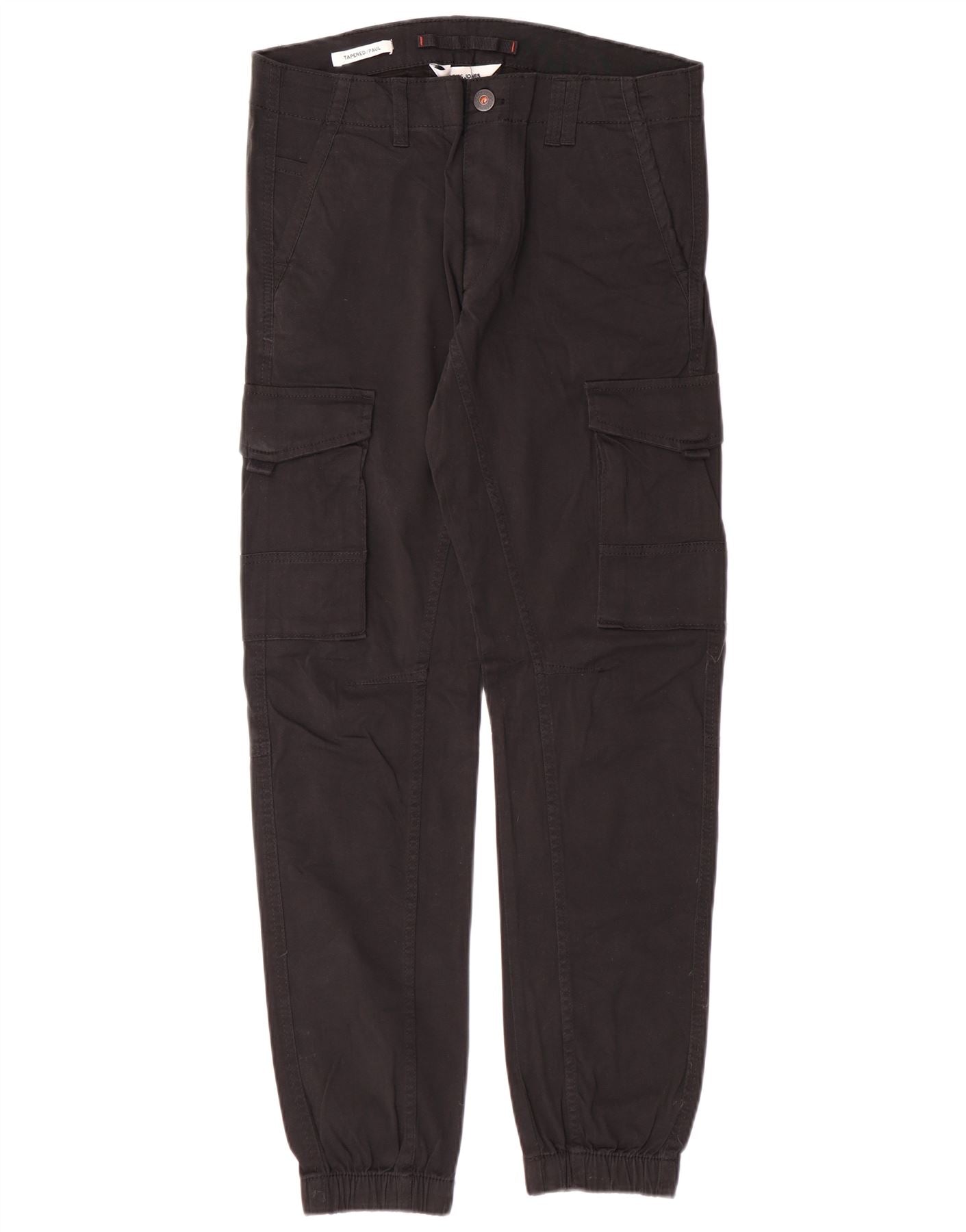 JACK & JONES Mens Paul Tapered Cargo Trousers W31 L32 Black Cotton Classic