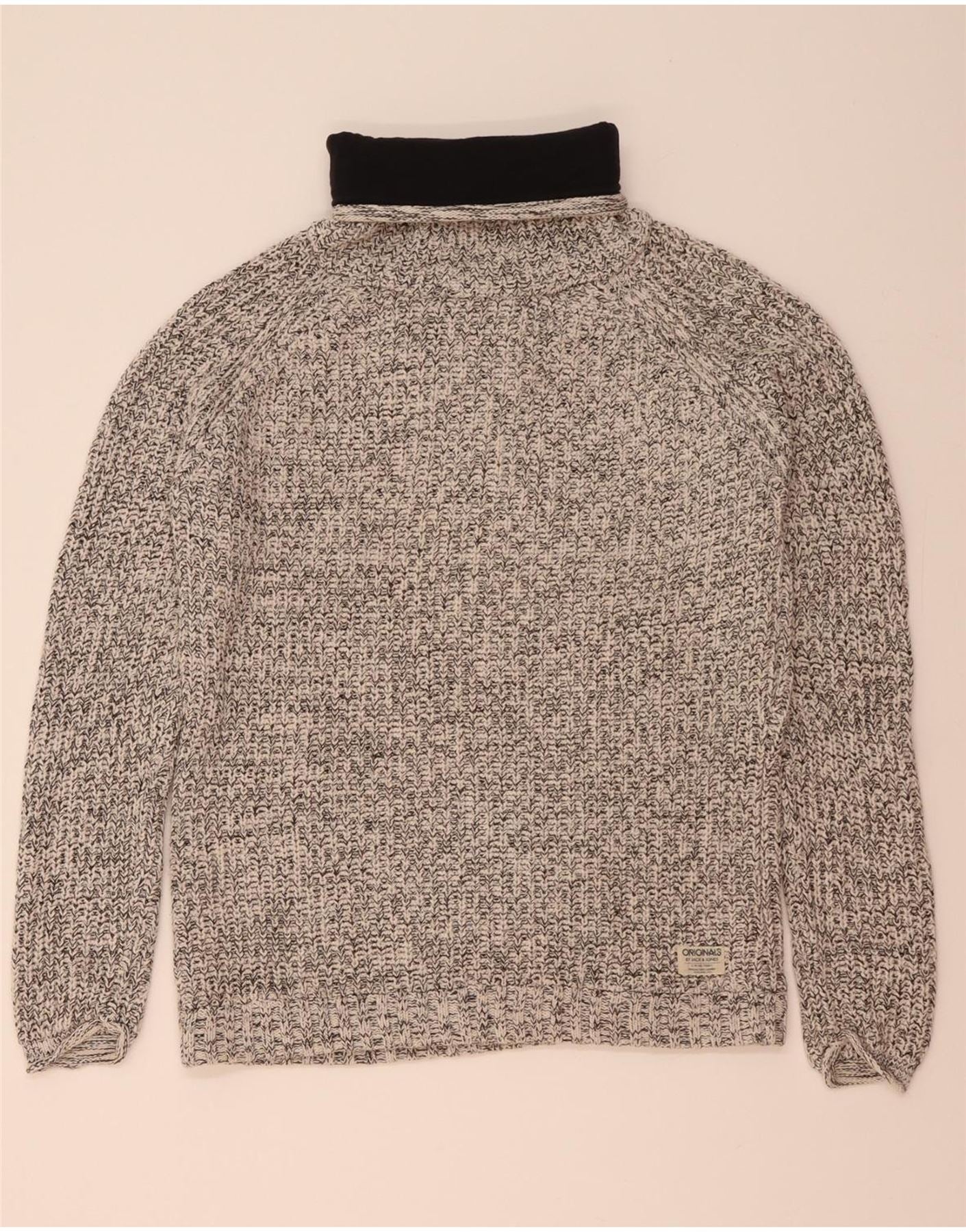 JACK & JONES Mens Roll Neck Jumper Sweater XL Grey Flecked Cotton