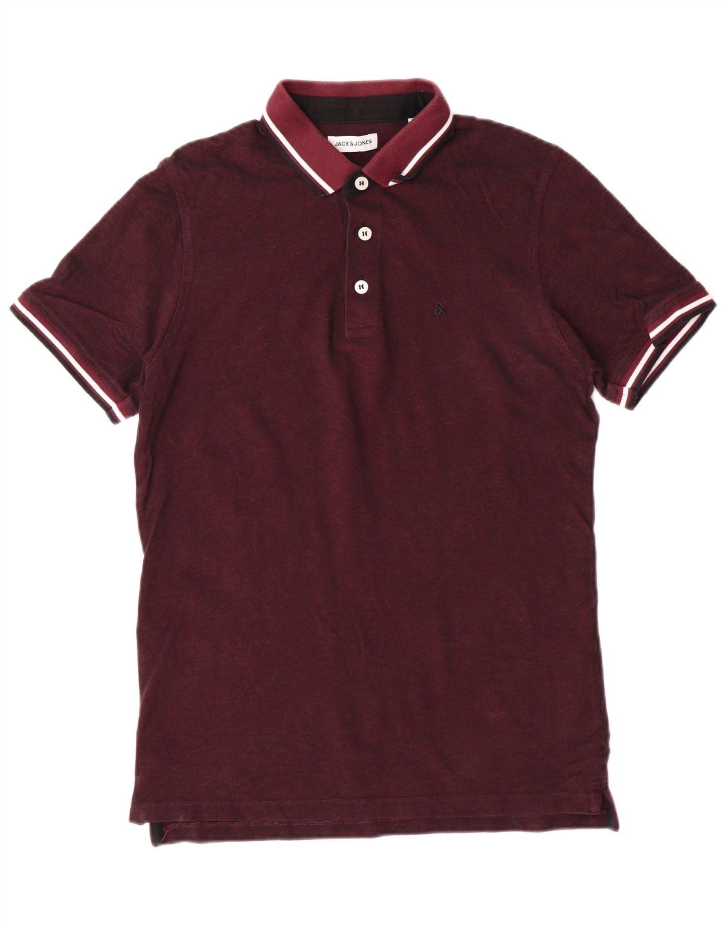 Jack & Jones Mens Short Sleeve Polo Shirt Medium Burgundy Cotton Classic