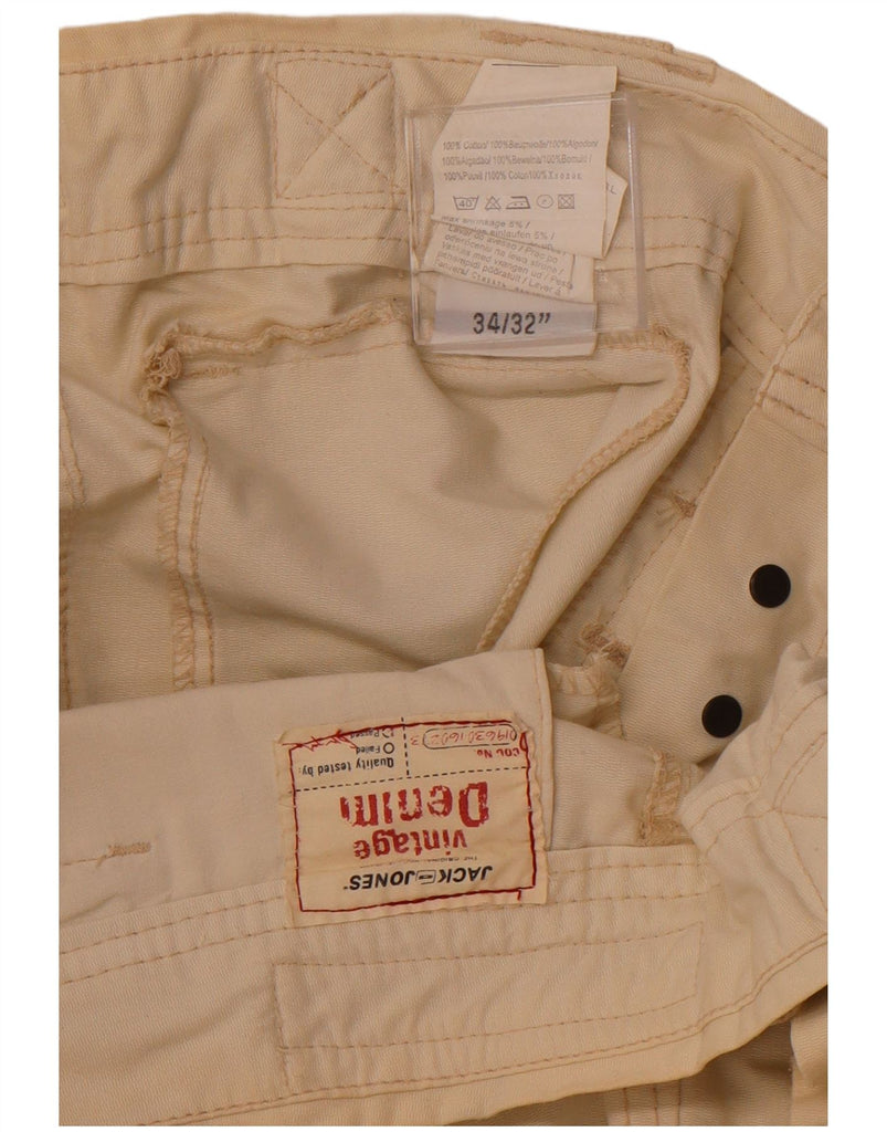 JACK & JONES Mens Straight Cargo Trousers W34 L32 Beige Cotton