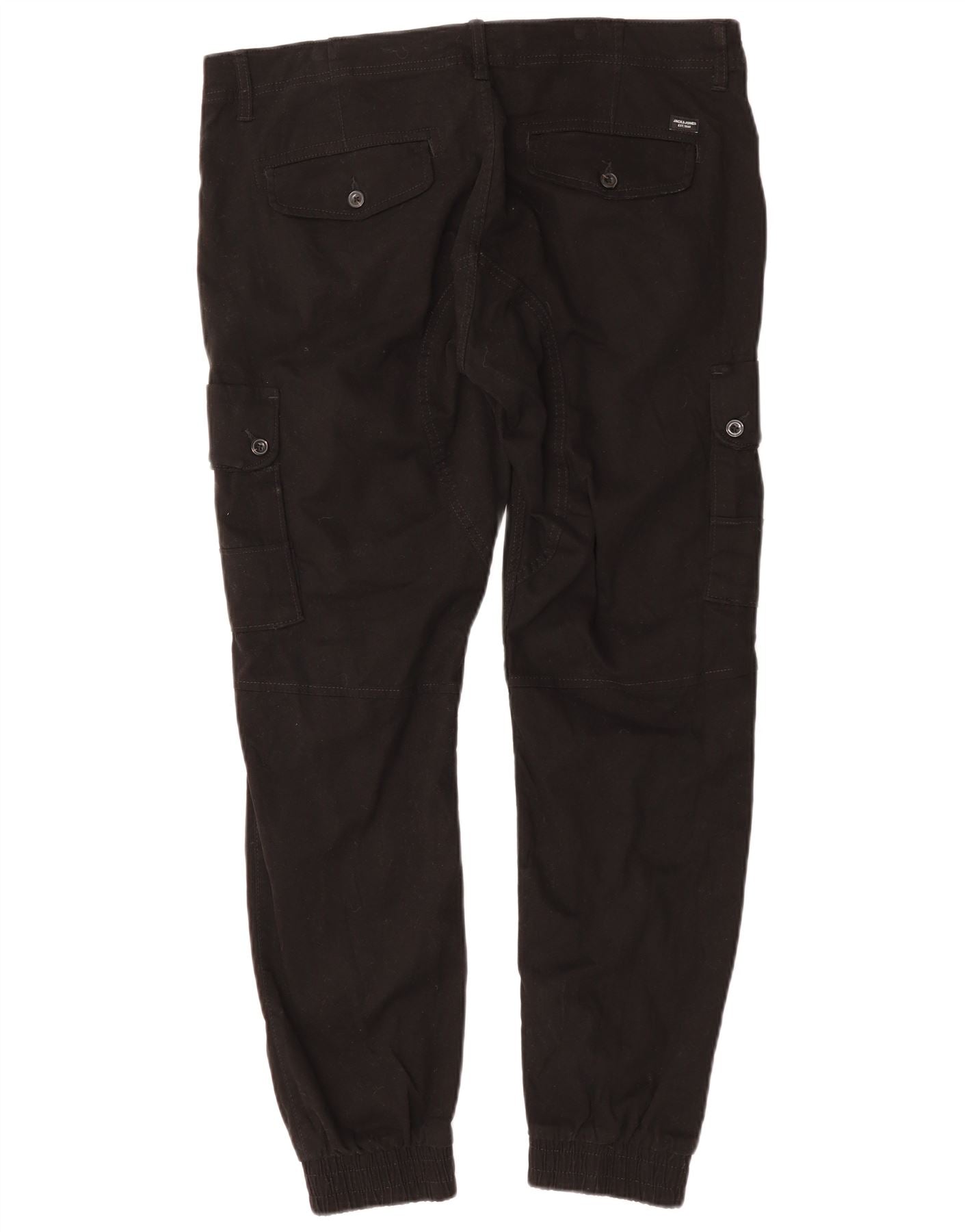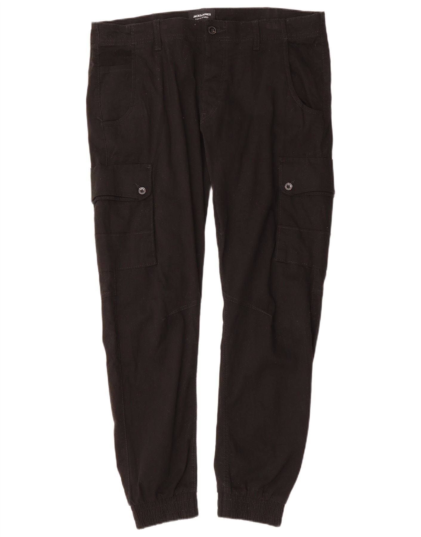 JACK & JONES Mens Tapered Joggers Cargo Trousers W36 L29 Black Cotton