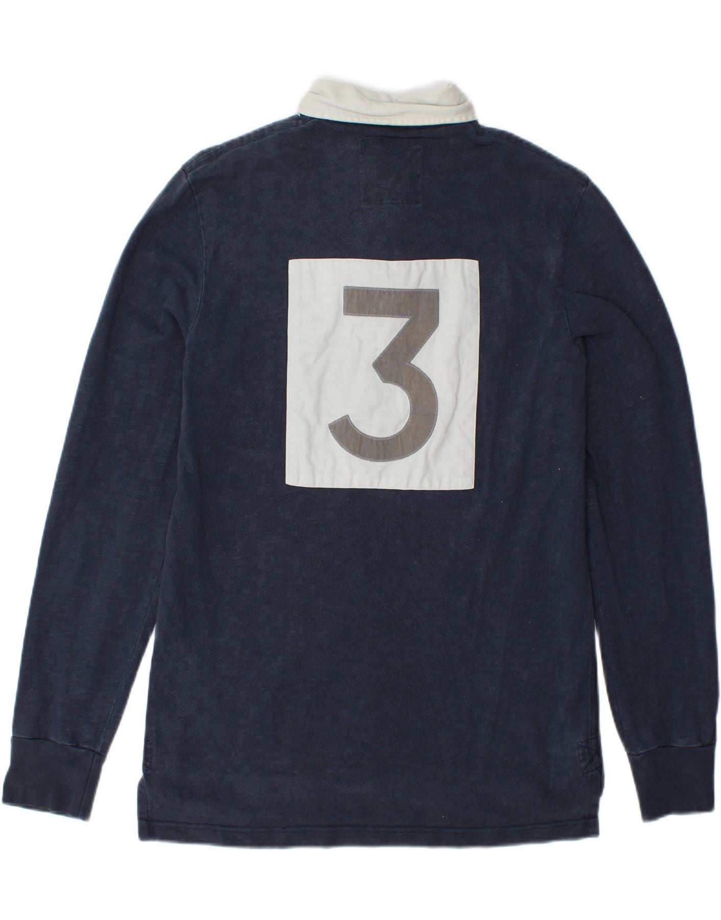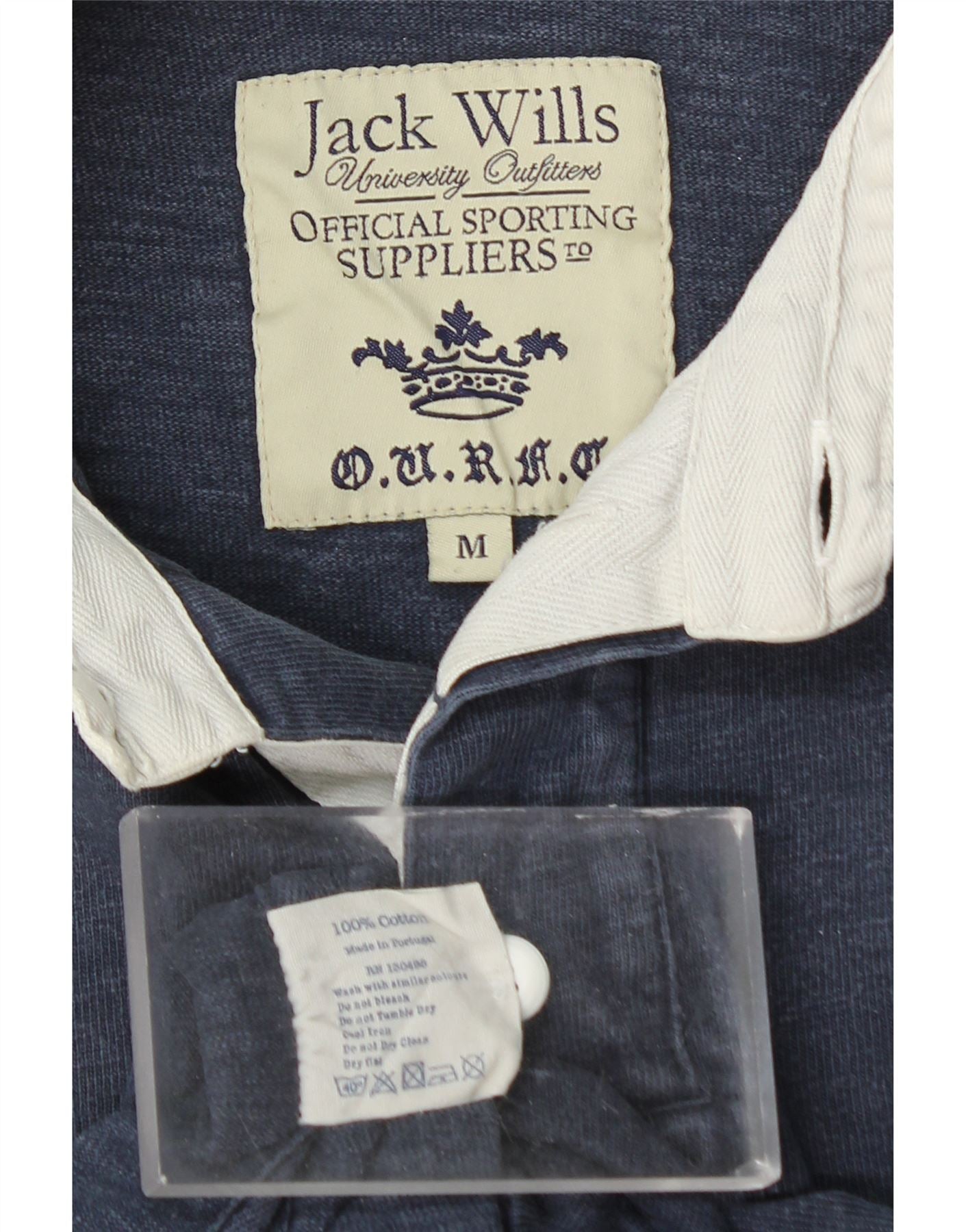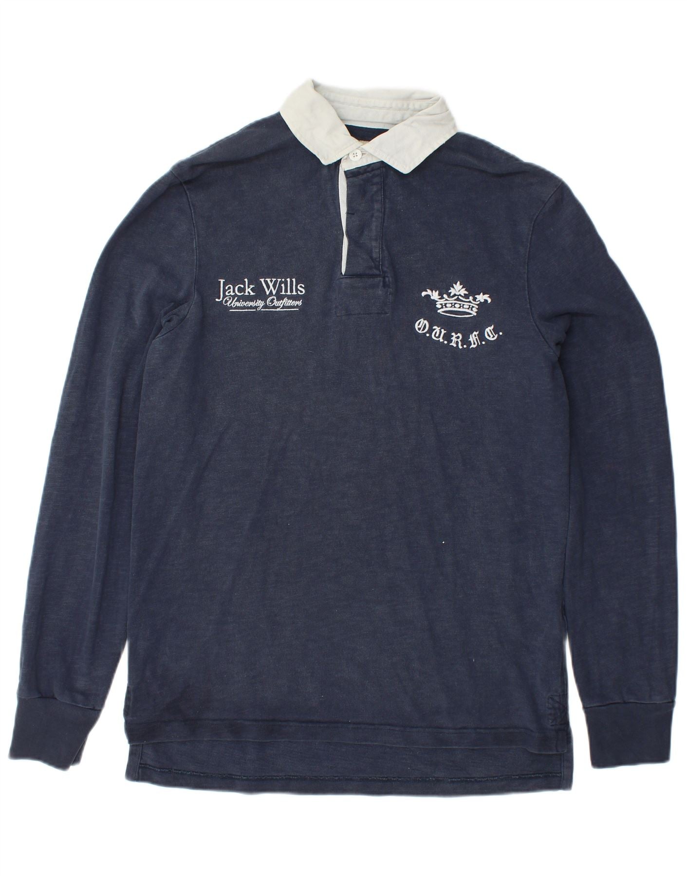 JACK WILLS Mens Graphic Rugby Polo Shirt Medium Navy Blue Colourblock