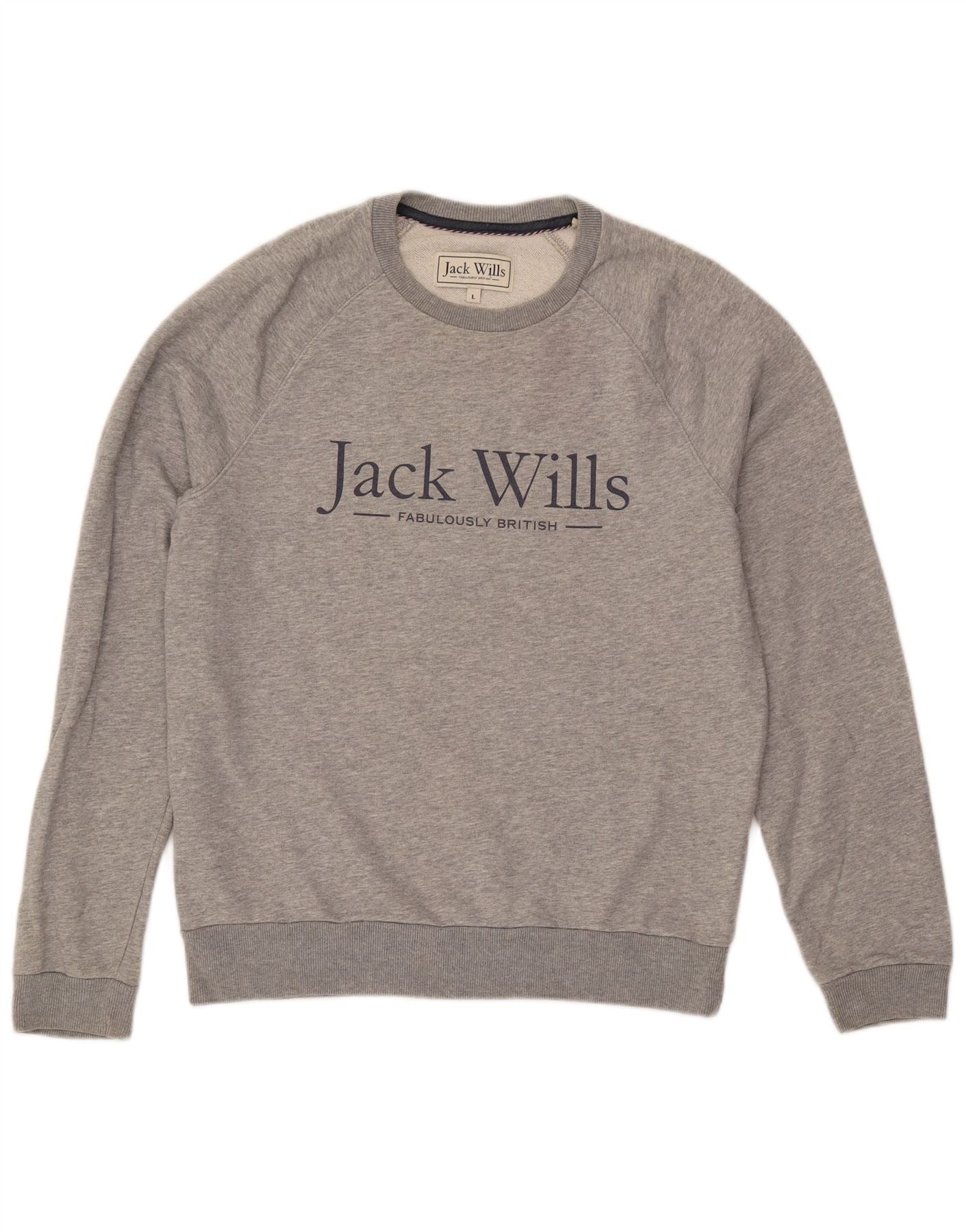 JACK WILLS Mens Graphic Sweatshirt Jumper Large Grey Cotton