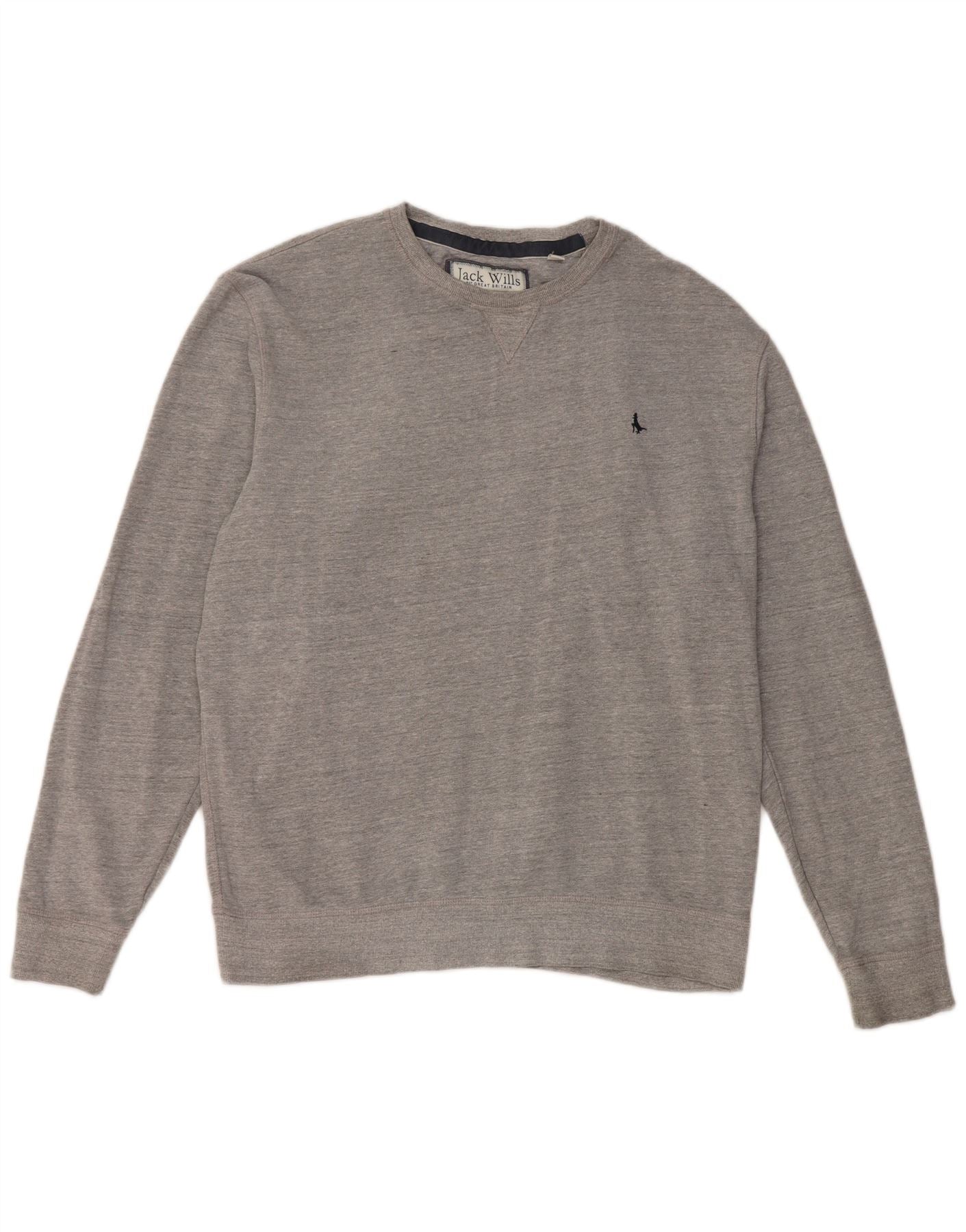 JACK WILLS Mens Sweatshirt Jumper XL Grey Pinstripe Cotton