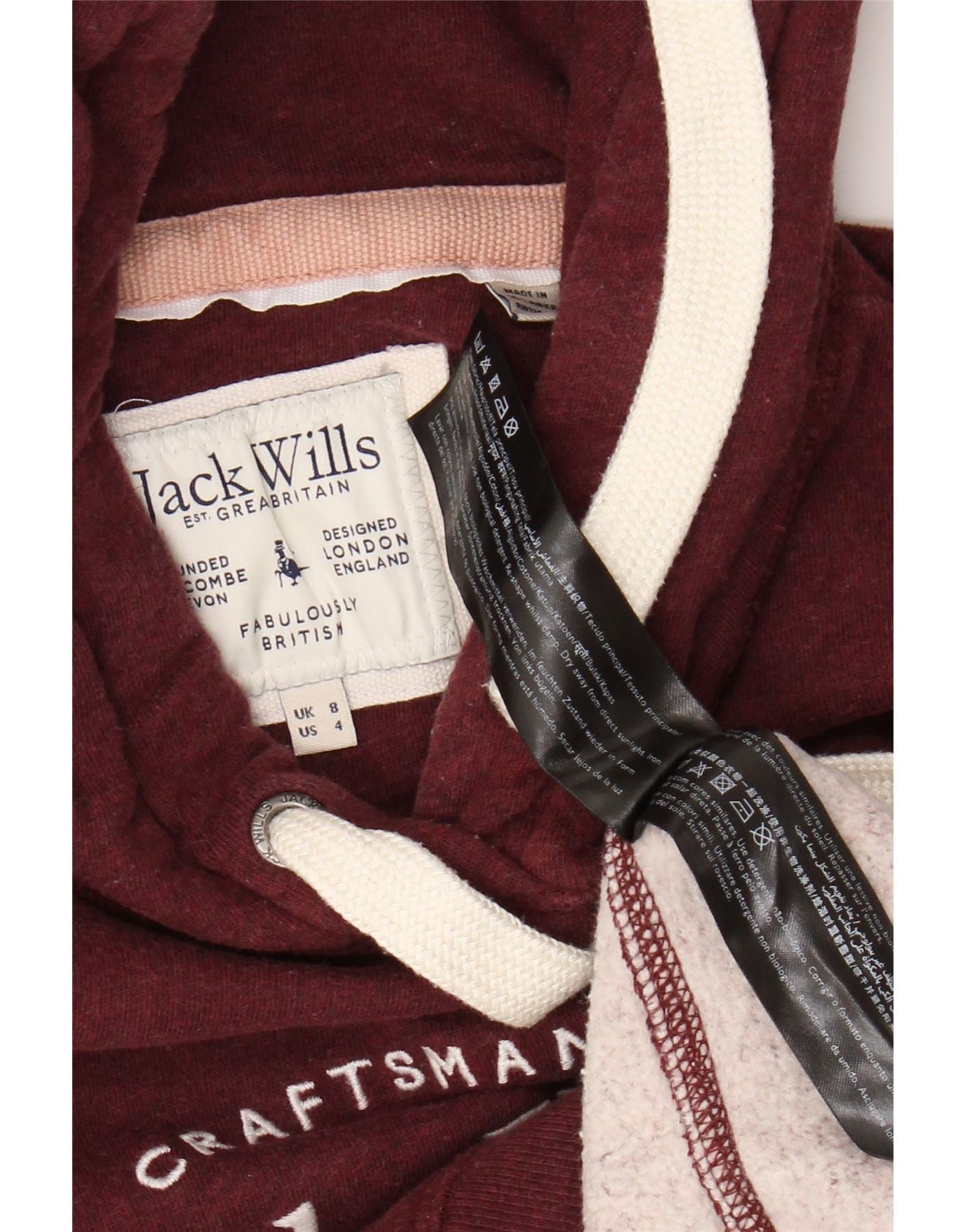 Jack Wills Womens Graphic Hoodie Jumper UK 8 Small Burgundy Cotton